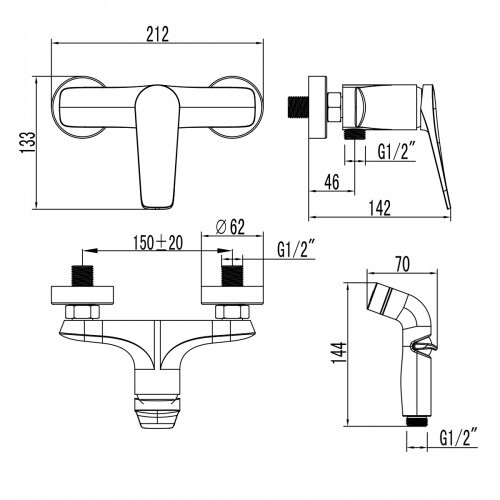 Смеситель Lemark Bronx LM3718GM с гигиеническим душем