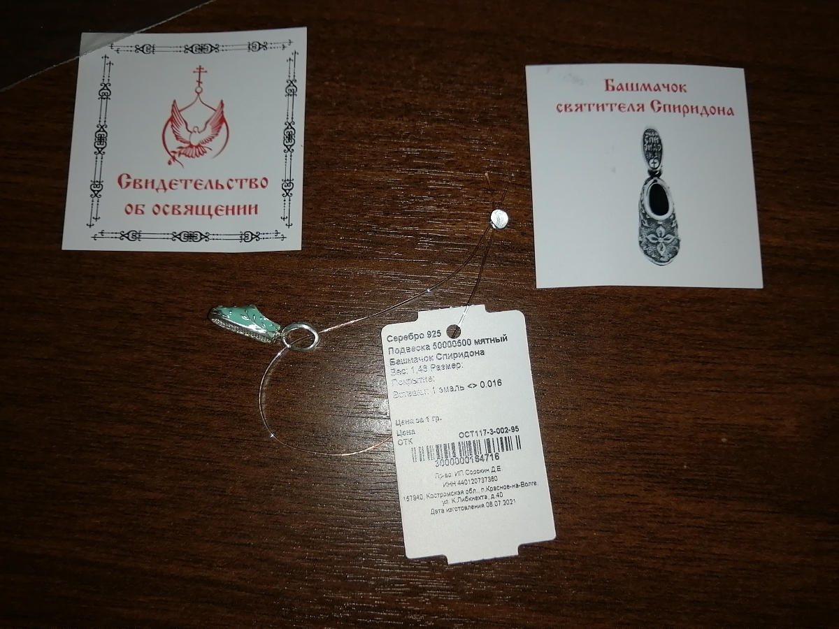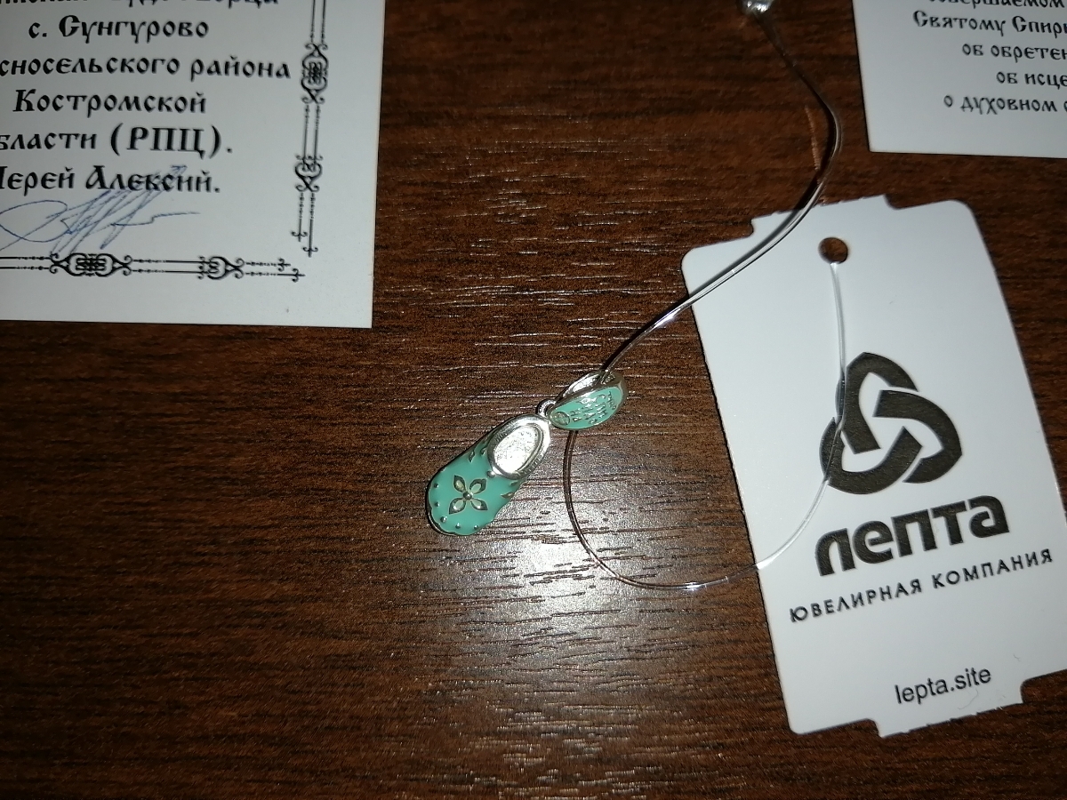 ЛЕПТА Подвеска серебряная с эмалью "Башмачок Спиридона"