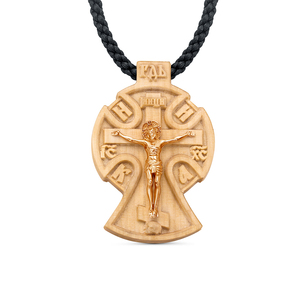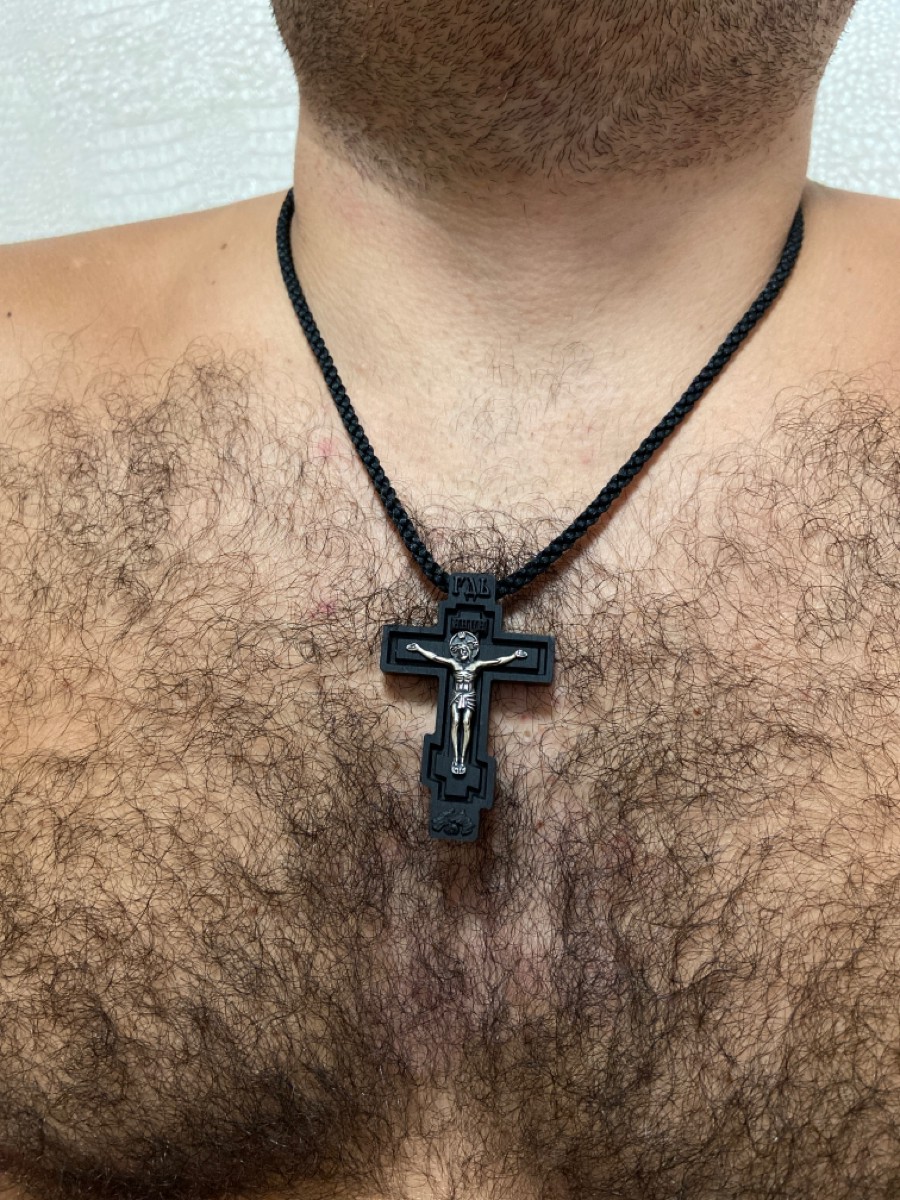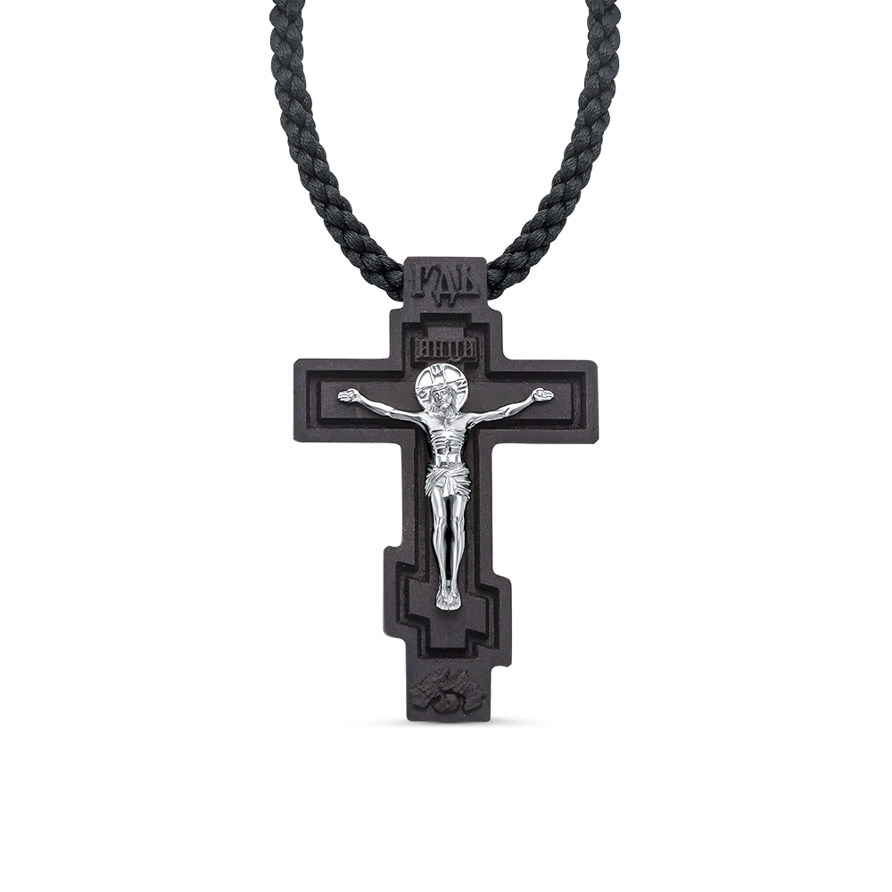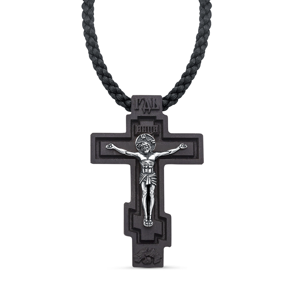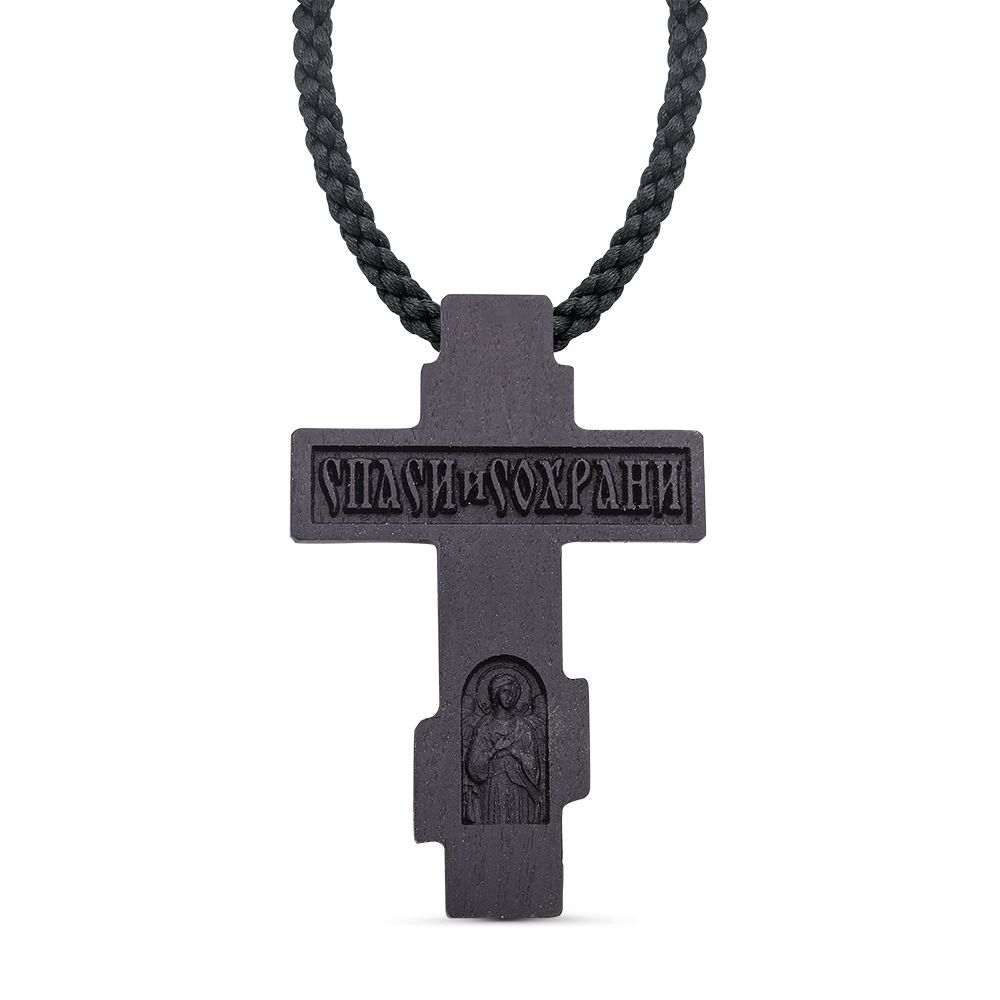 ЛЕПТА Крестик деревянный на гайтане с серебряной накладкой, освящен
