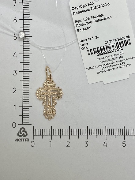 ЛЕПТА Крестик Крест серебряный, освящен