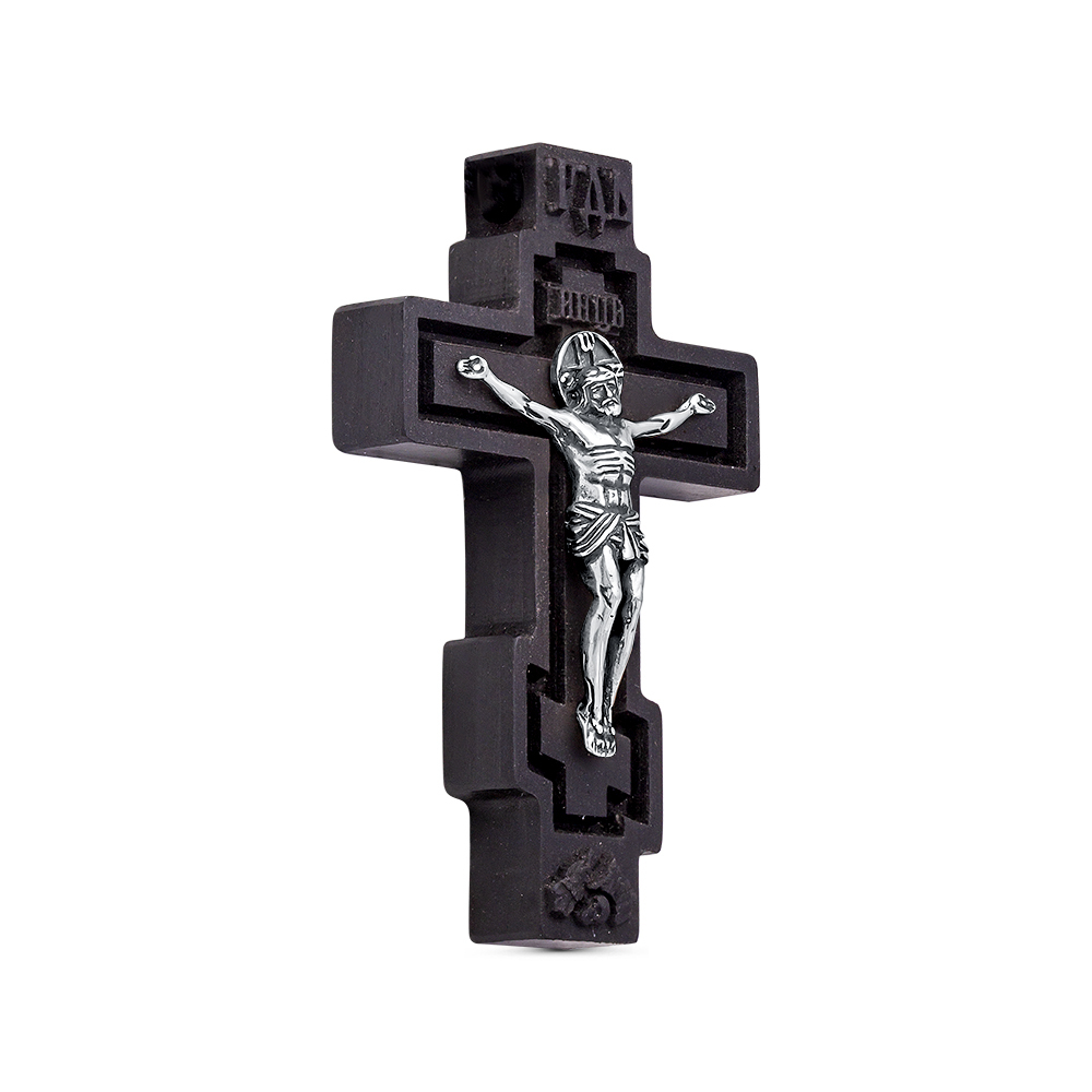 ЛЕПТА Крестик Крест деревянный на гайтане с серебряной накладкой