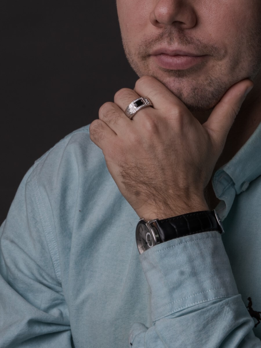 ЛЕПТА Кольцо Печатка мужская с ониксом "Ангел Серафим"