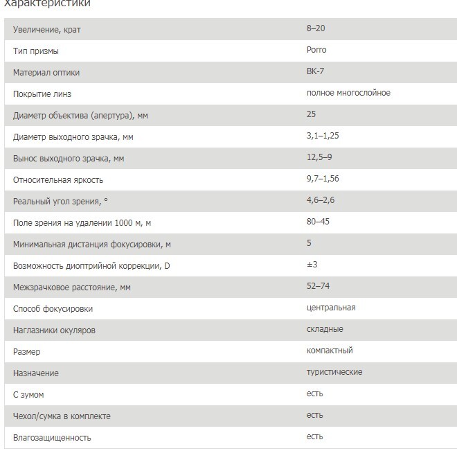 Бинокль levenhuk Atom 8–20х25 8-20х 25мм