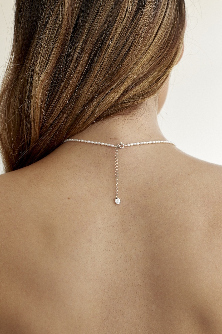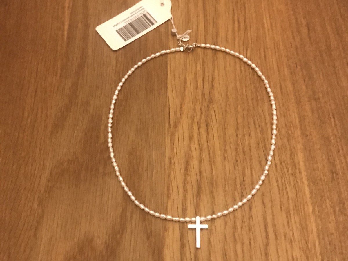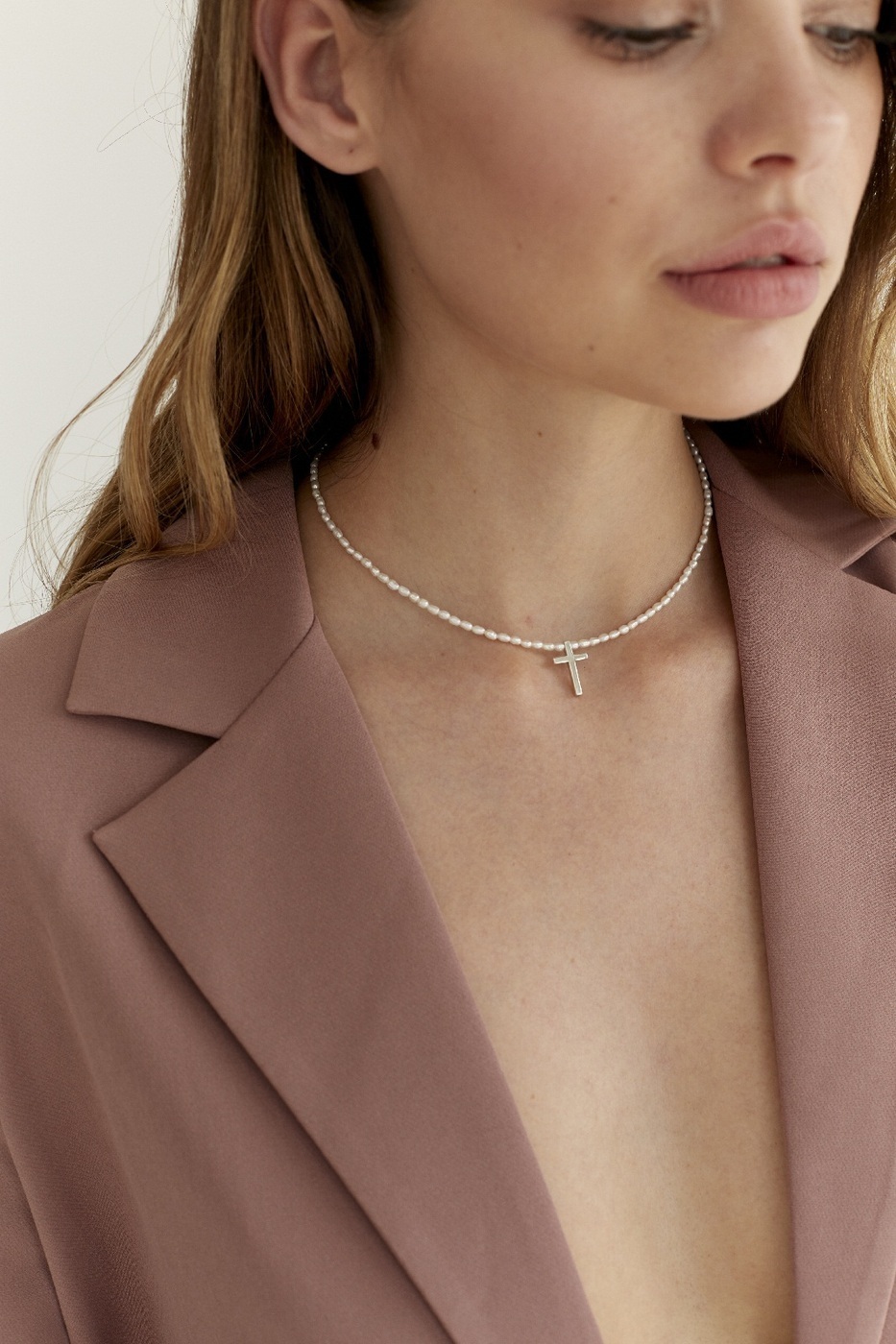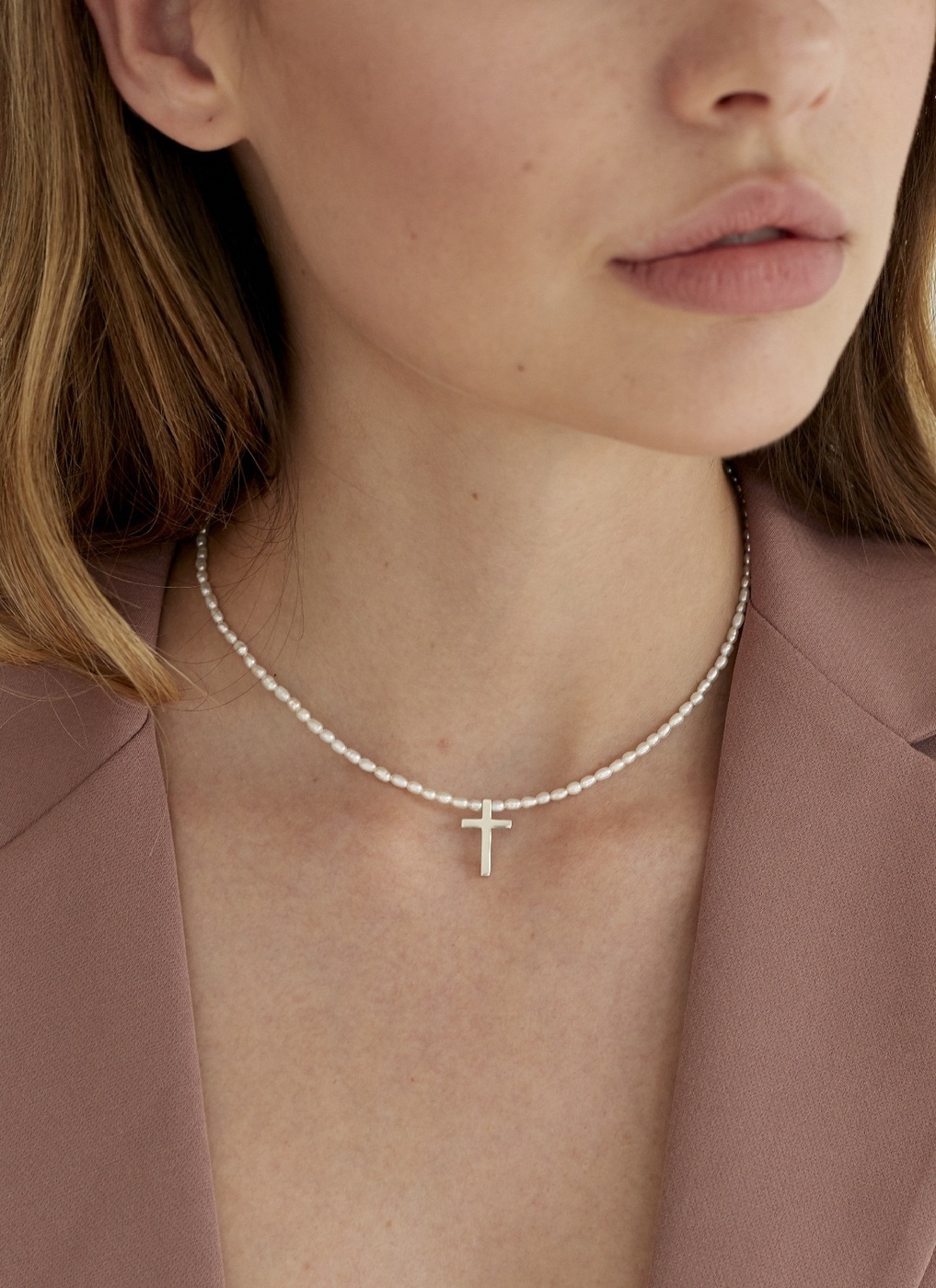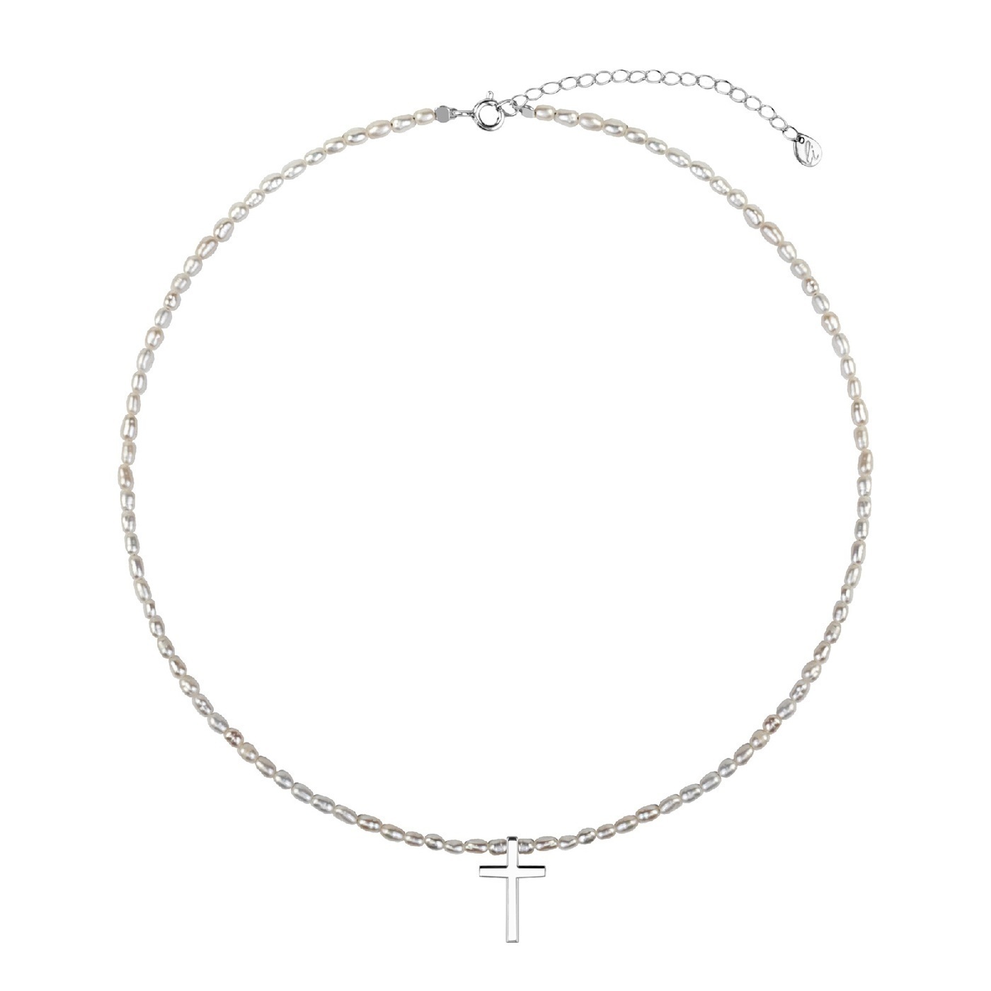 Li Колье чокер на шею женский из речного жемчуга с серебряным крестиком