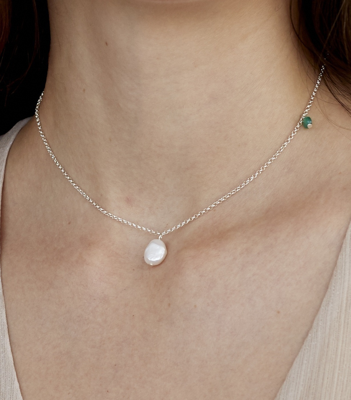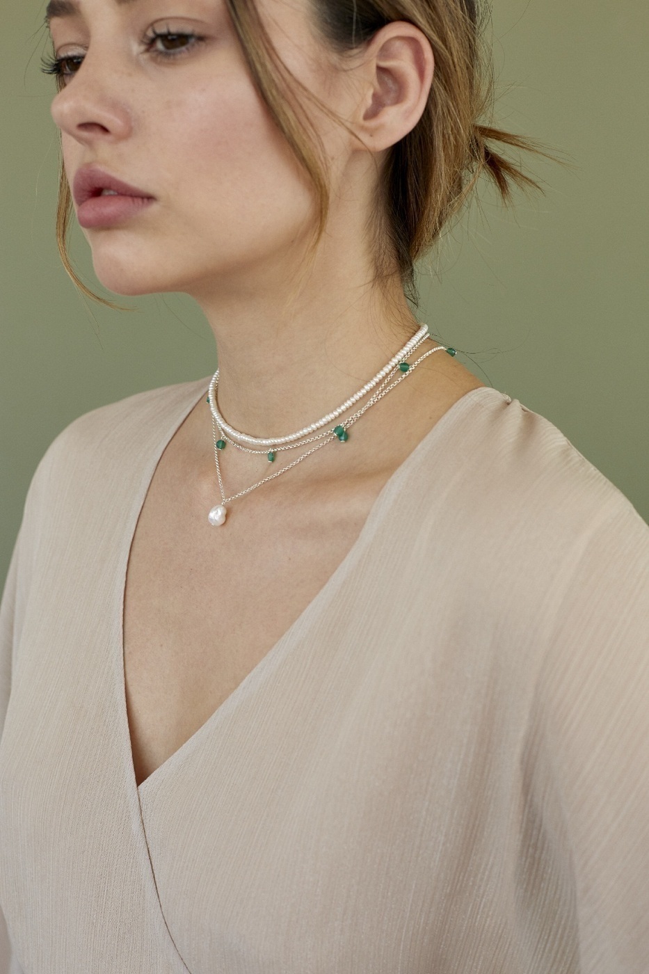 Li Колье Мона Лиза с жемчугом и зеленым ониксом