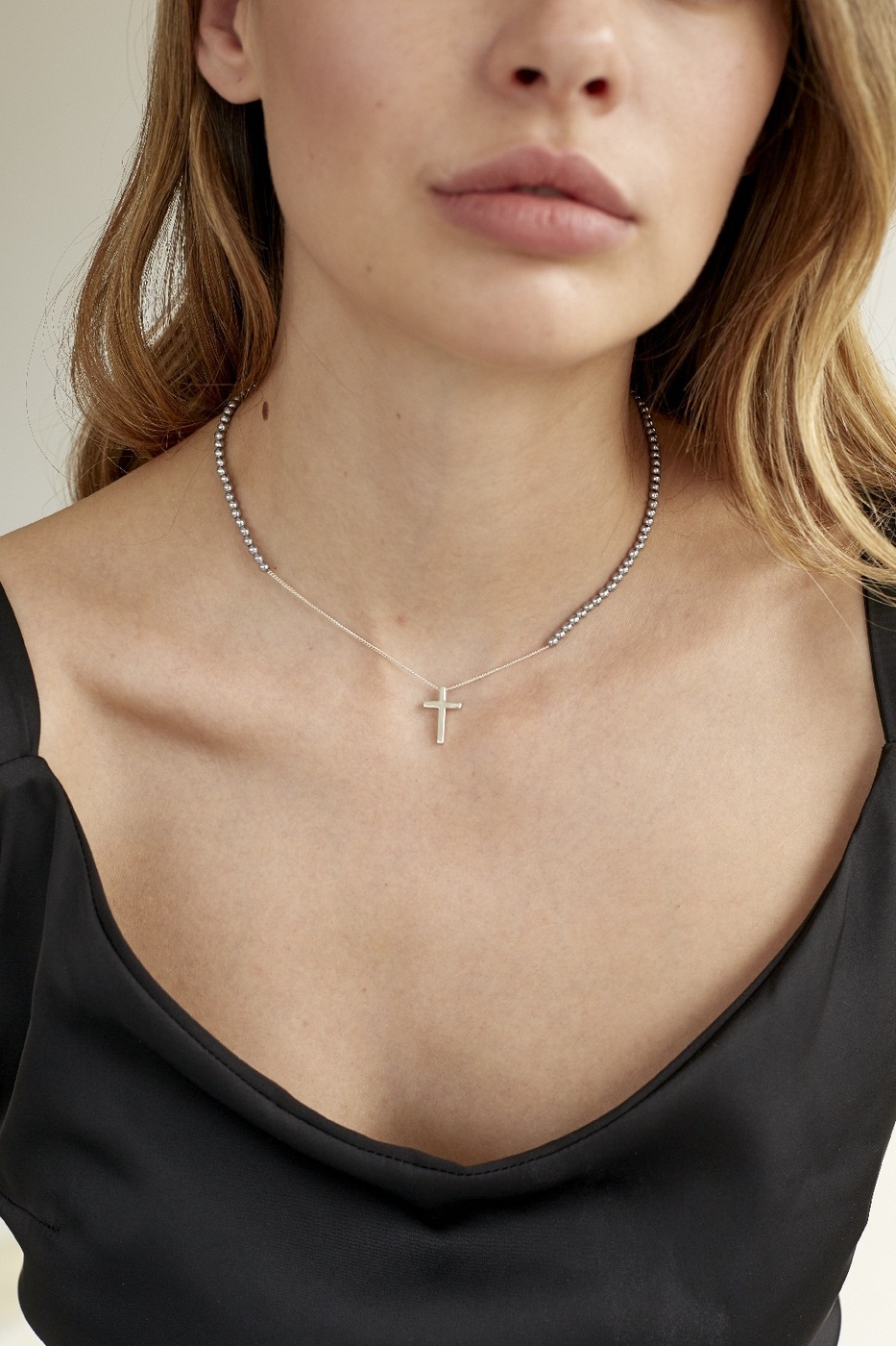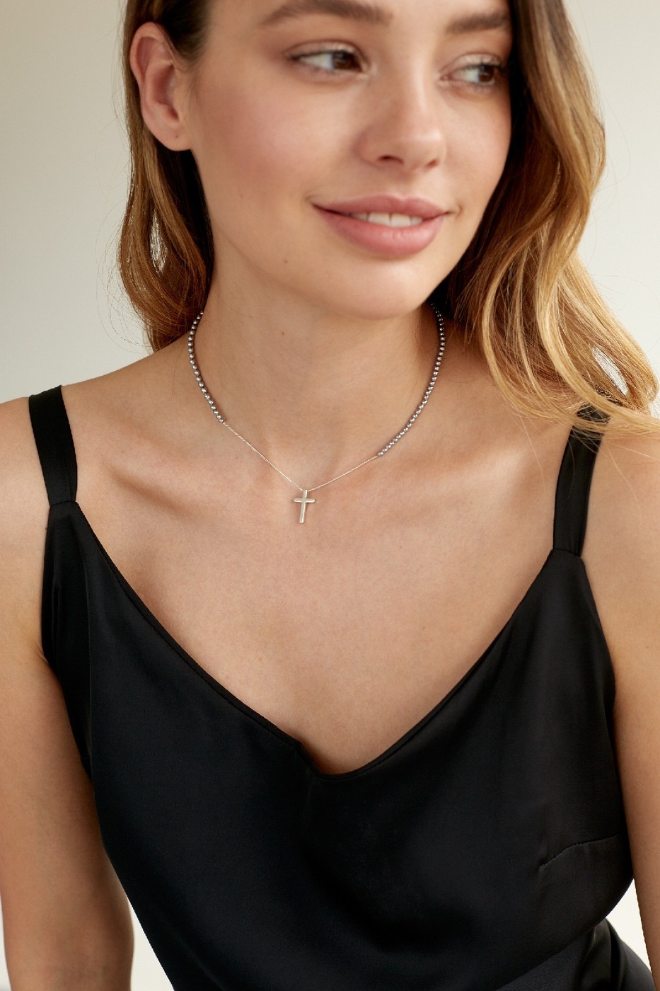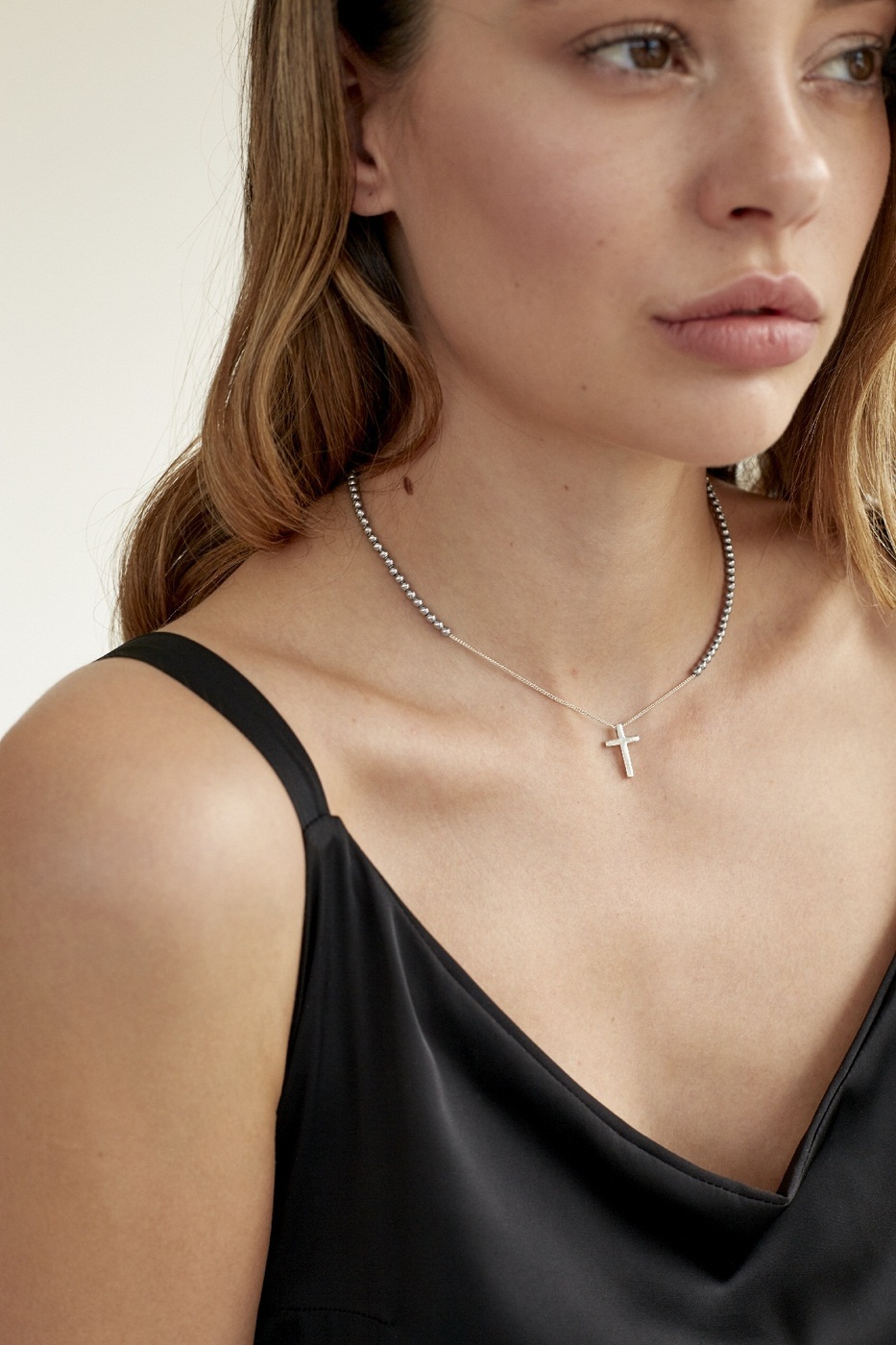 Li Колье из гематитов с серебряным крестиком на цепочке