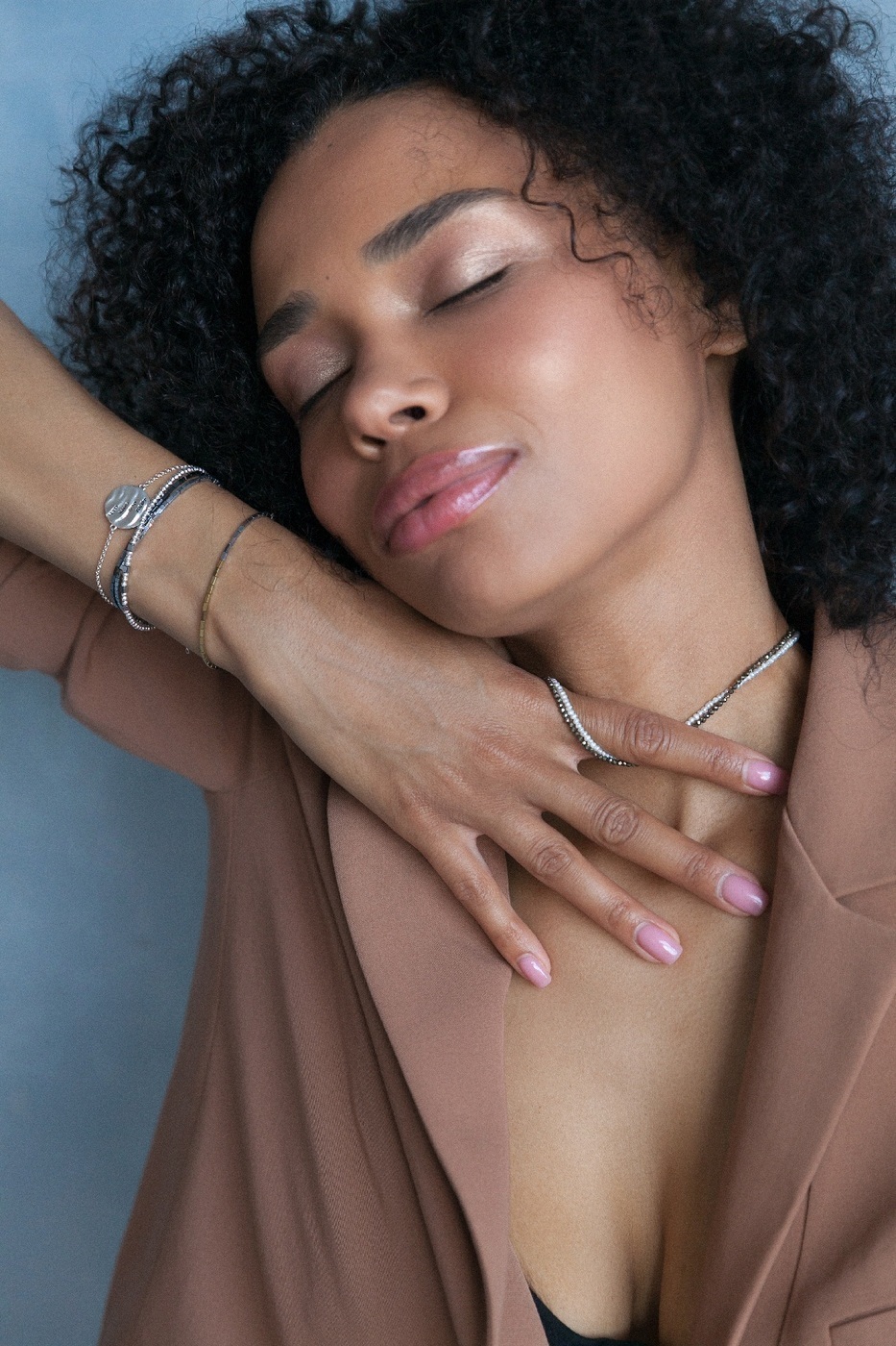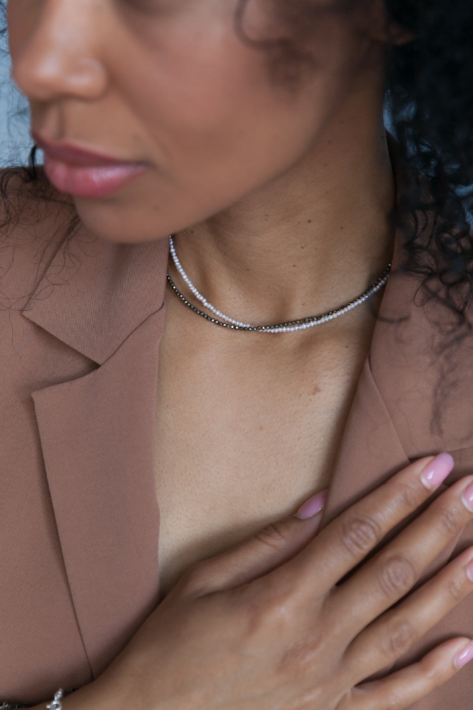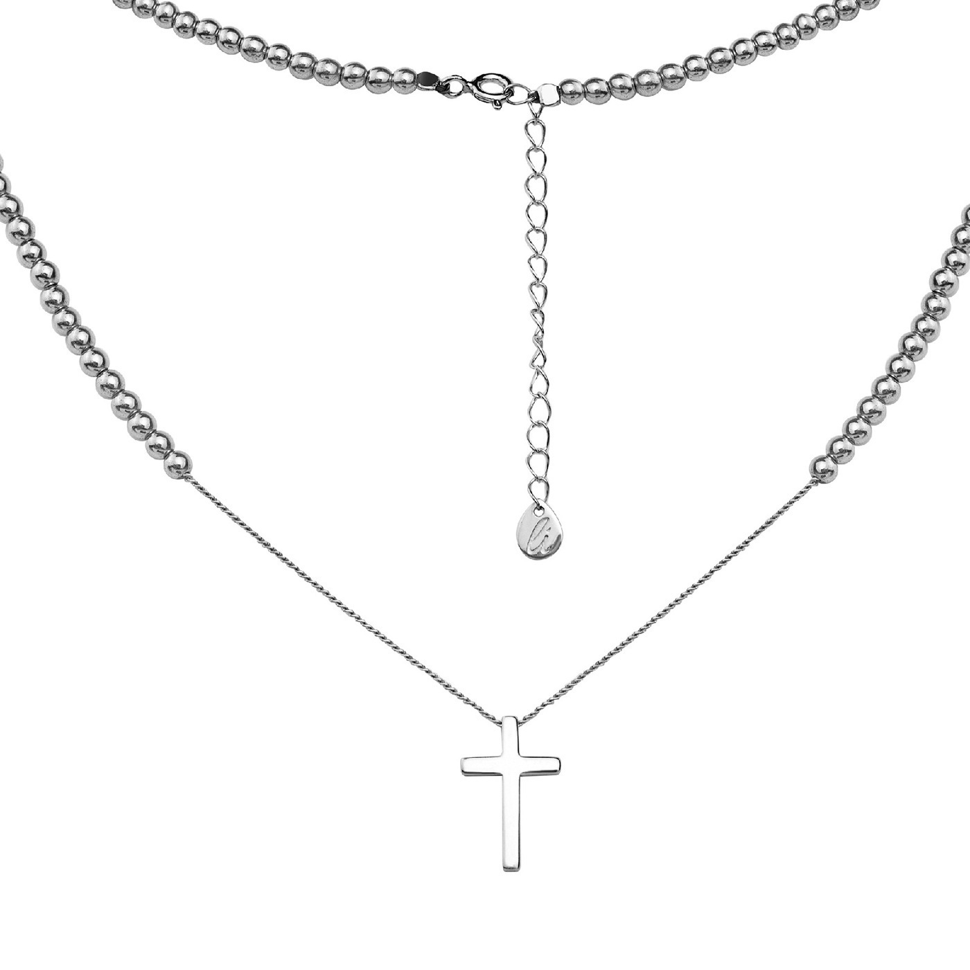 Li Колье из гематитов с серебряным крестиком на цепочке