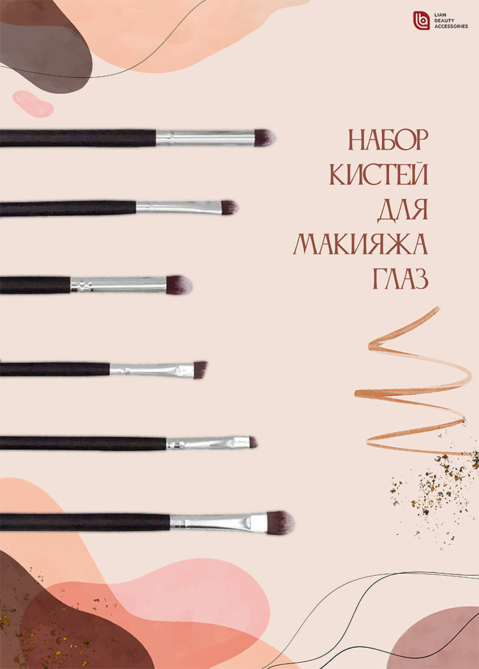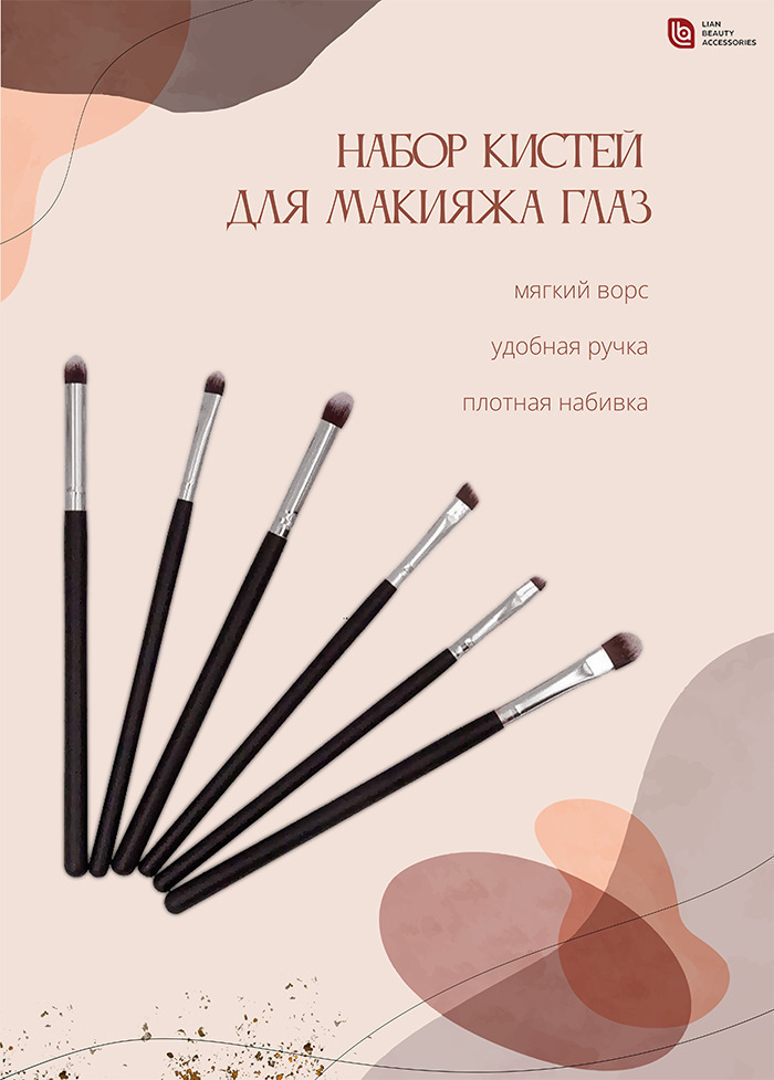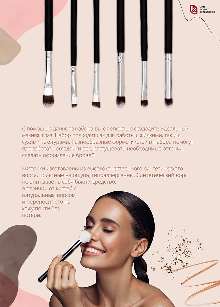 Lian Beauty Accessories Кисти для макияжа 6 шт./ Набор кистей для макияжа, 6 шт./ Профессиональные кисти для нанесения макияжа