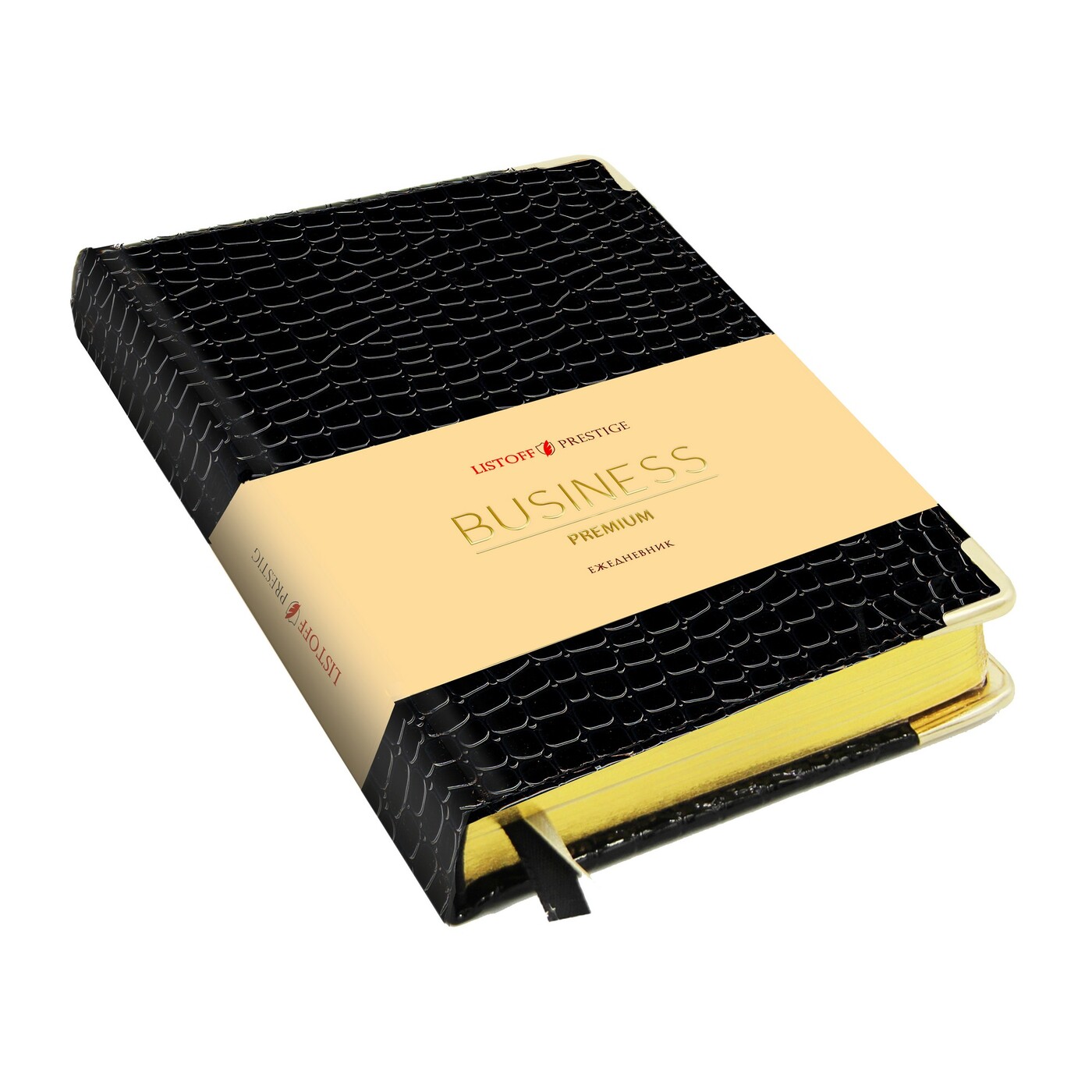 Ежедневник Listoff А5, недатированный, 152 листа. Искусственная кожа. Iguana (черный).