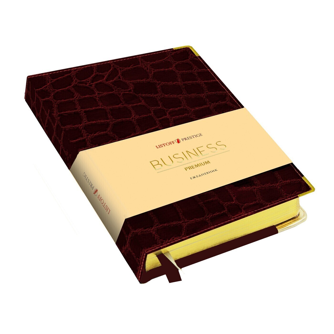 Ежедневник Listoff А5, недатированный, 152 листа. Искусственная кожа Grand croco (бордо).