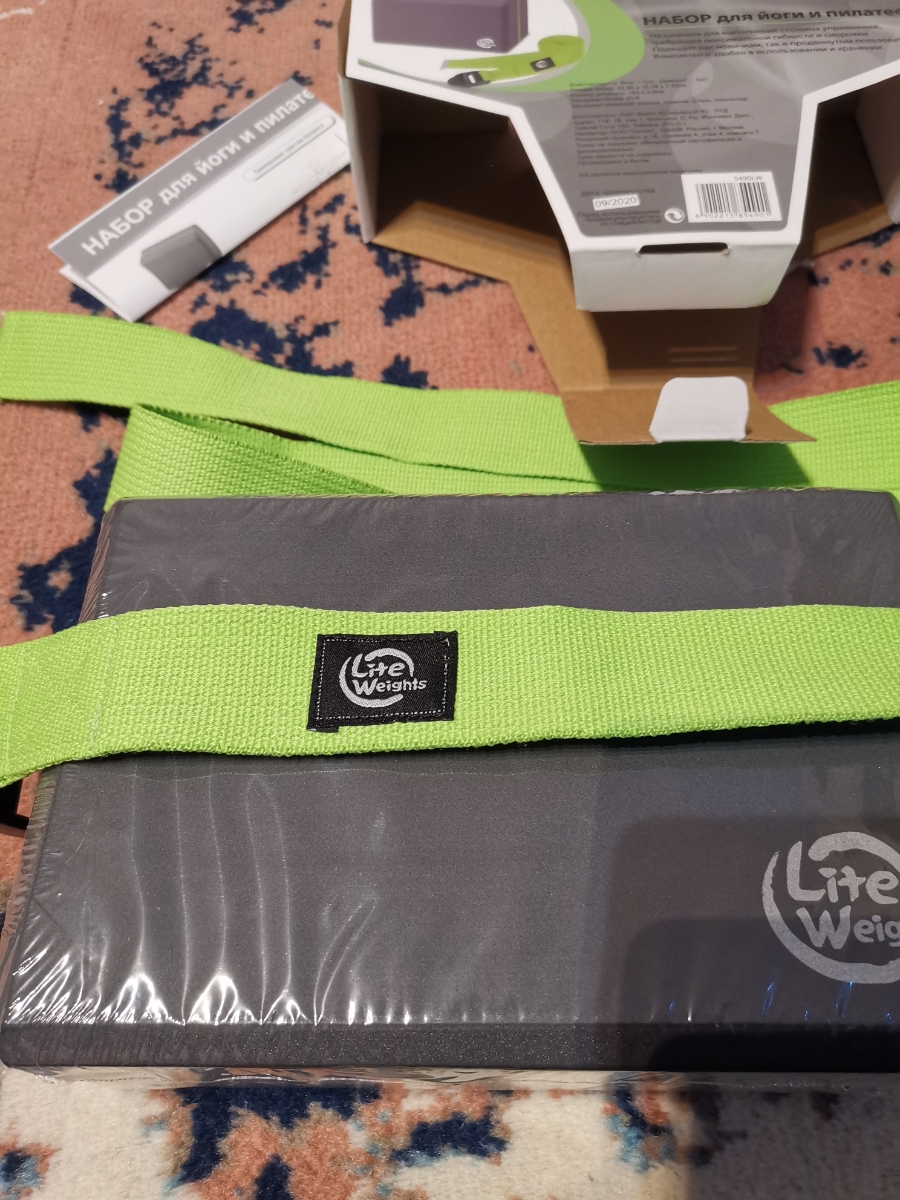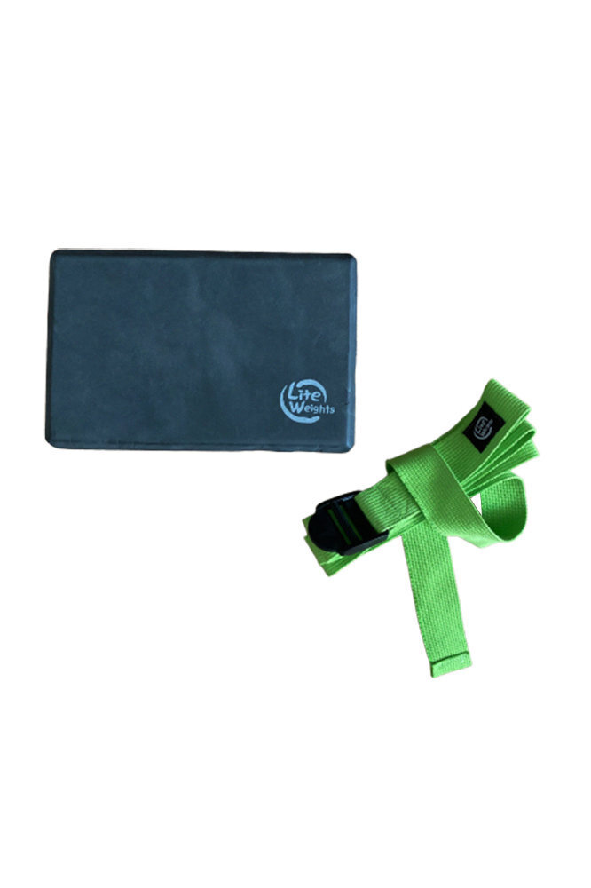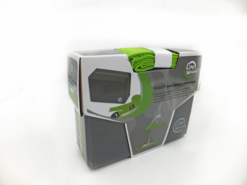 Набор для йоги и пилатеса 5490LW (блок, ремешок), серый/салатовый