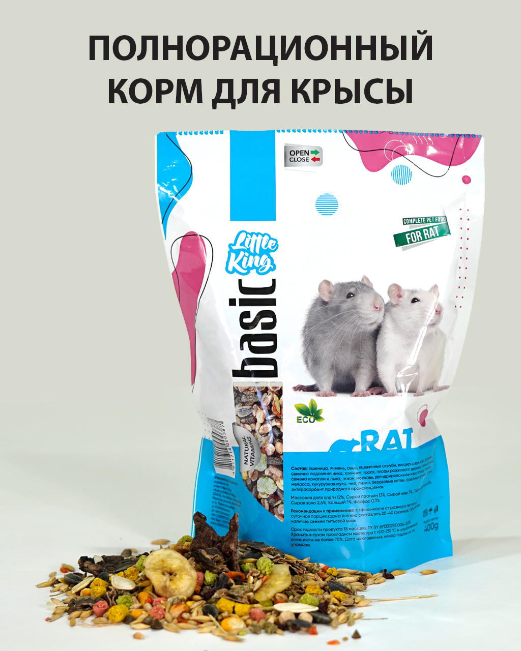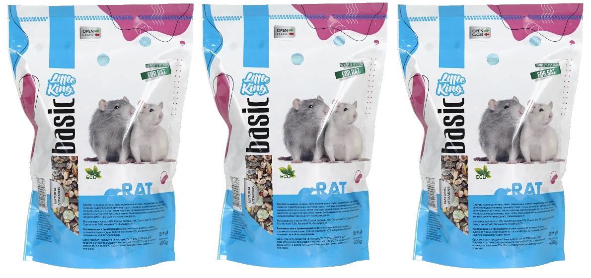 Корм для крыс Little King (Беларусь), 3 упак по 400г., полнорационный