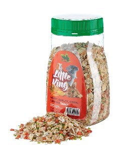 Little King лакомство для грызунов (плющеная пшеница, ячмень, кукуруза, морковь), банка 180г.