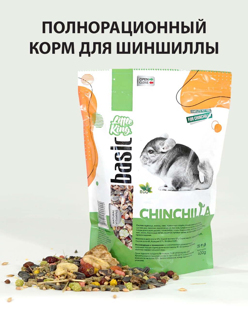 Корм для шиншилл, дой-пак пакет 400г, полнорационный, сухой