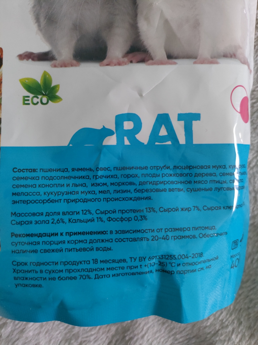 Корм для крыс, дой-пак пакет, 400г, полнорационный, сухой