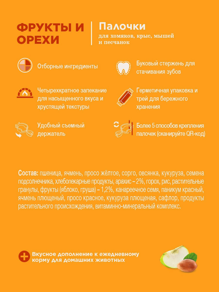 Палочки для хомяков, крыс, мышей и песчанок Little one с фруктами и орехами, 120 грх2упаковки
