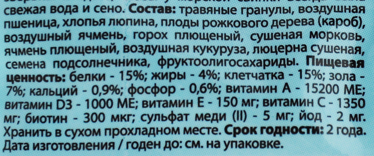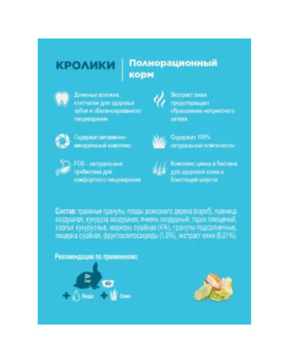 Сухой корм для кроликов / смесь кормовая зерновая с овощами для грызунов little one 400г