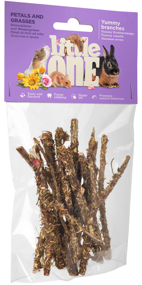 Лакомство Little One Лакомые ветви c лепестками и травами для всех видов грызунов 35 гр