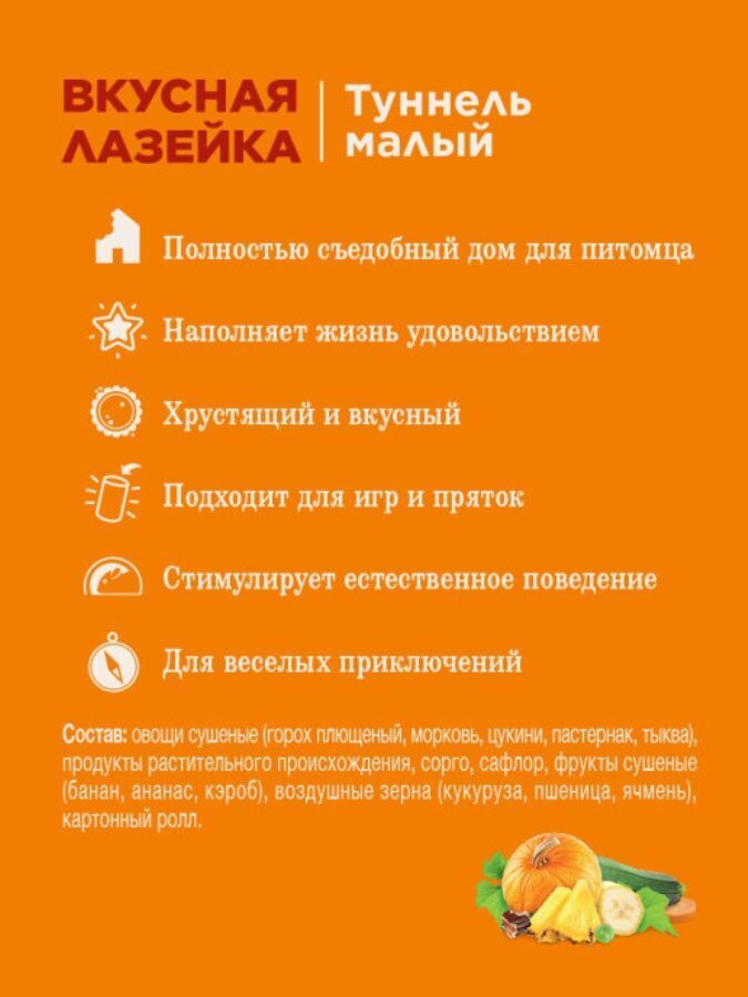 Лакомство-игрушка туннель малый "Вкусная лазейка" для грызунов Little One (Литтл Уан), 100 гр