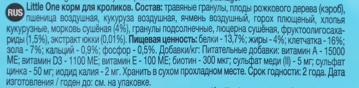 Литтл Уан сух. корм д/молодых кроликов (вес 400 гр) (комплект из 5 шт)
