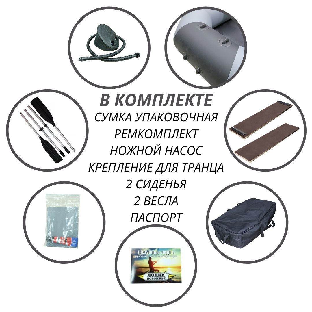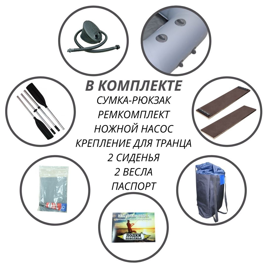 Лодка ПВХ Лодки Поволжья R-250 надувная лодка (Цвет: Серый)