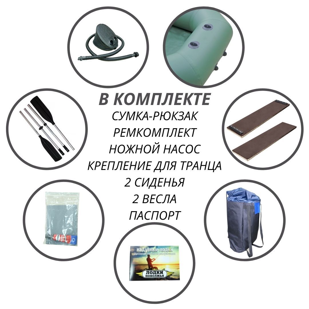 Лодка ПВХ Лодки Поволжья R-210 гр (Цвет: Зелёный)