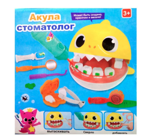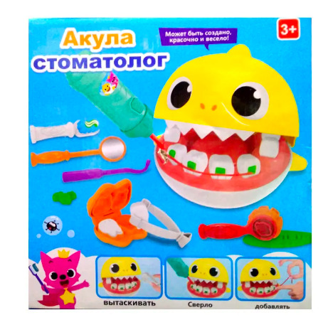 Игровой набор стоматолог "Акула" инструменты и 5 баночек