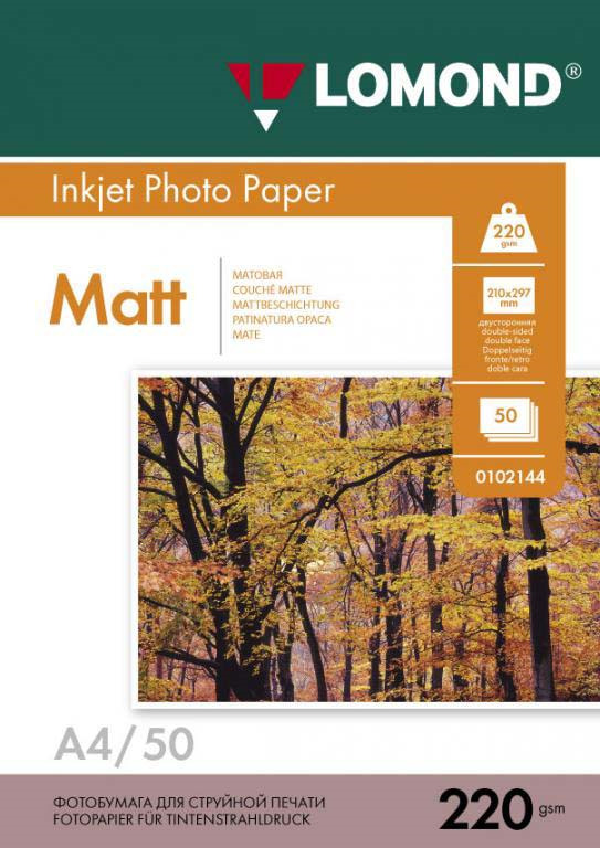 Фотобумага Lomond 0102144, для струйной печати, матовая, белый, A4, 50 листов. Уцененный товар