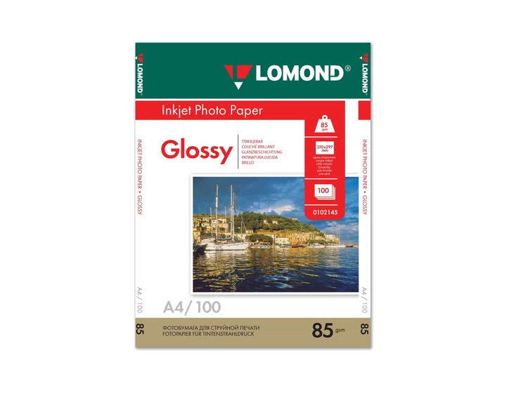 Фотобумага А4, 85 г/м2, 100 листов, односторонняя, глянцевая, LOMOND, 0102145