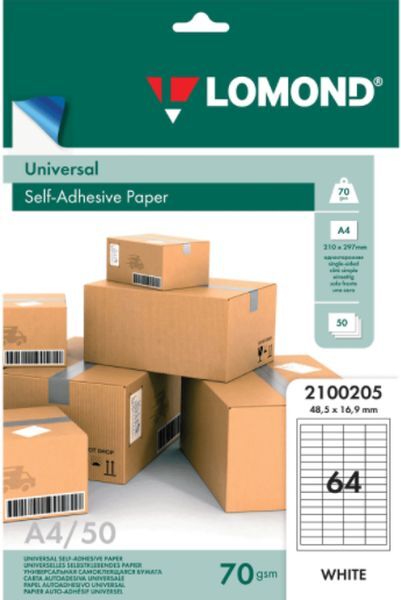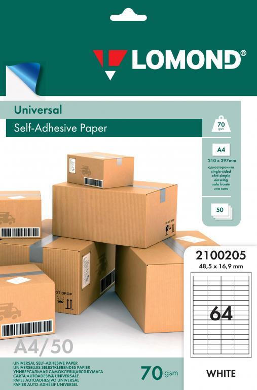 Наклейки Lomond 2100205 A4 64 делений 48,50мм х 16,90мм 50 листов 70 г/м2