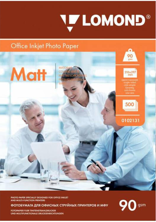 Фотобумага Lomond 0102131 A4, 90г, м2, 500л., белый матовое для струйной печати