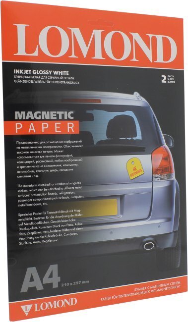 Фотобумага белая глянцевая с магнитным слоем LOMOND 2020345 A4, 2 листа