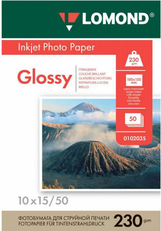 Фотобумага Lomond 0102035 10x15, 230г, м2, 50л., белый глянцевое для струйной печати