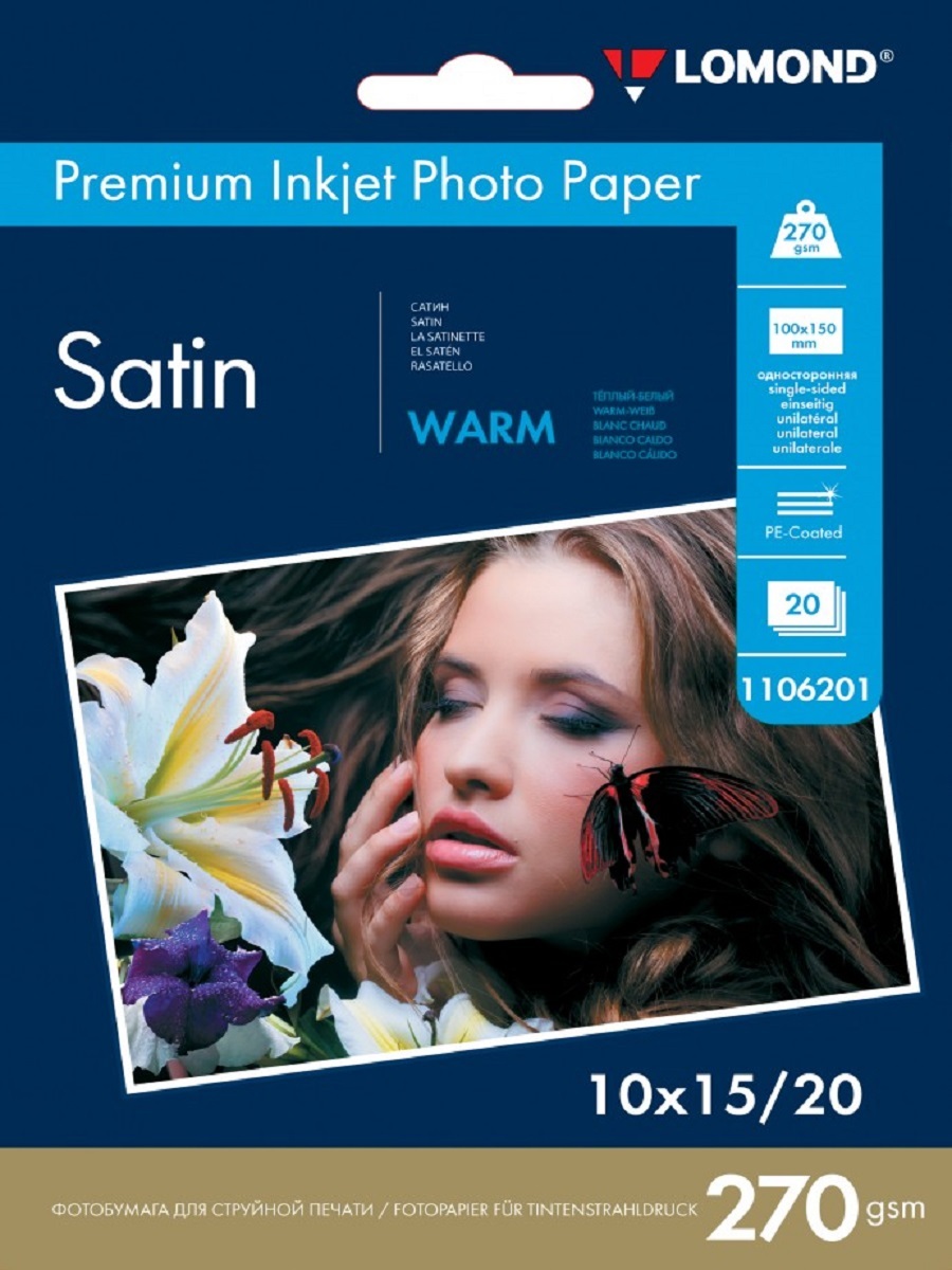 Фотобумага Premium Satin, А6 (10X15см), 270 г/м2, 20 листов, односторонняя, Lomond 1106201