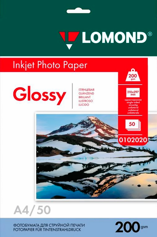 Фотобумага LOMOND глянцевая A4, 200 г/м2, 50 л. (0102020)