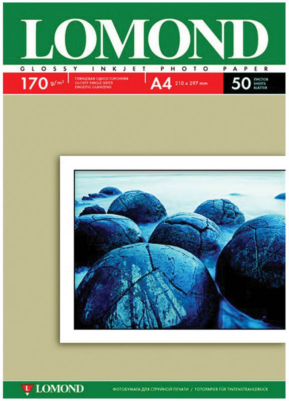 Бумага для принтера Lomond, для струйной печати, глянцевая, белый, A4, 170 г/м2, 50 листов