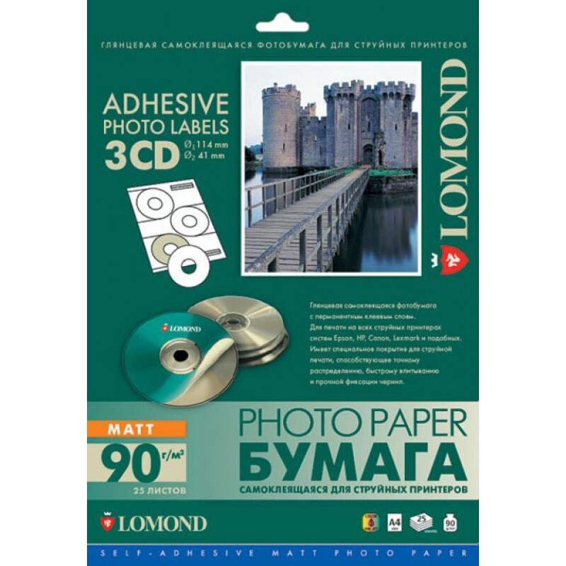 Фотобумага самоклеящаяся Lomond Matte для CD/DVD 3 шт A4 25 листов (2211023)