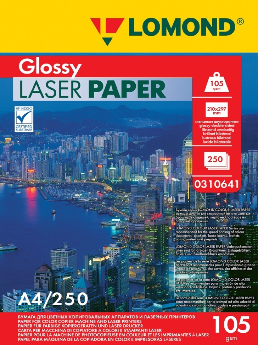 Фотобумага для лазерной печати А4 105 г/м2, 250 л. глянцевая, двусторонняя, Lomond 0310641