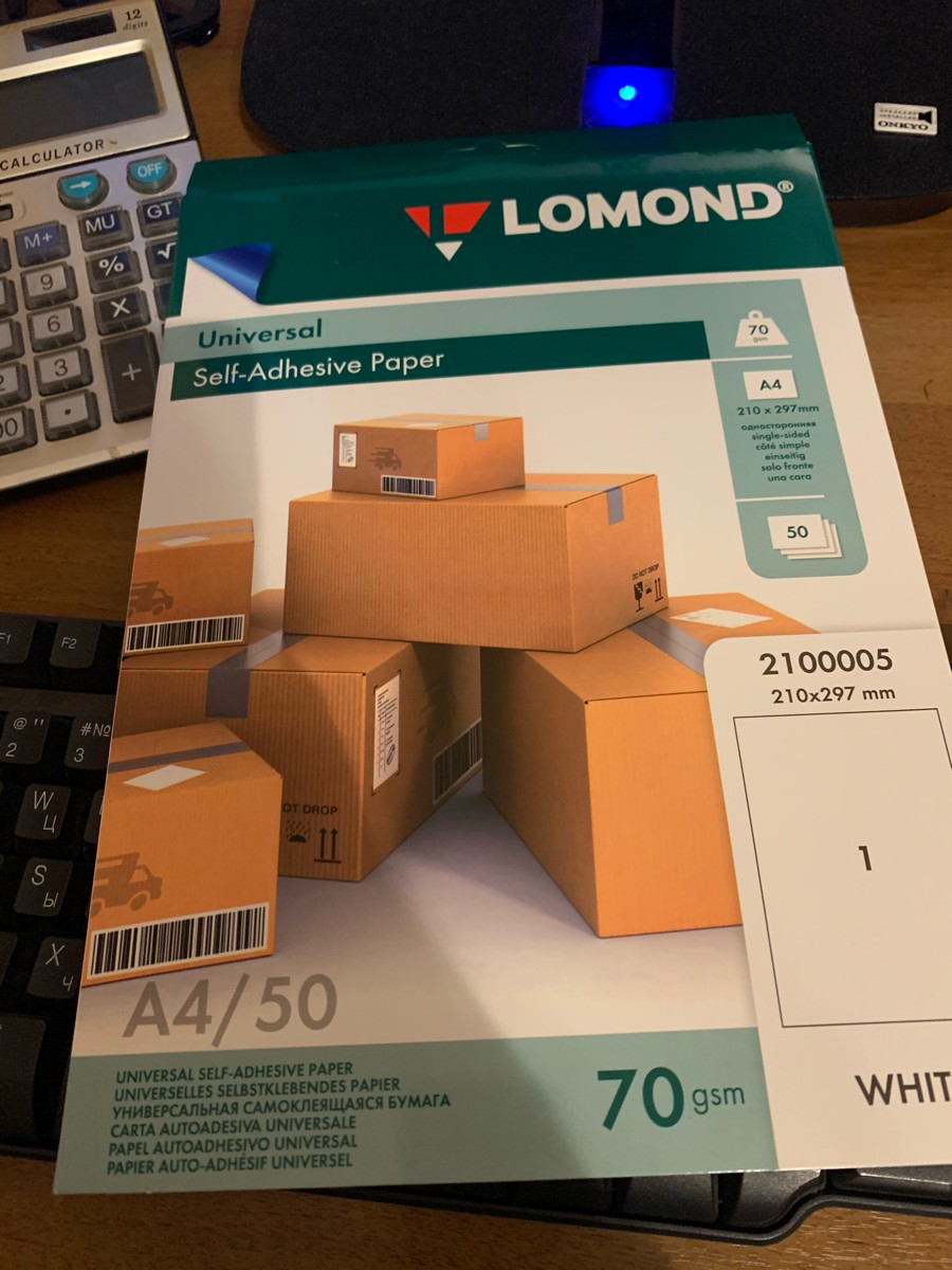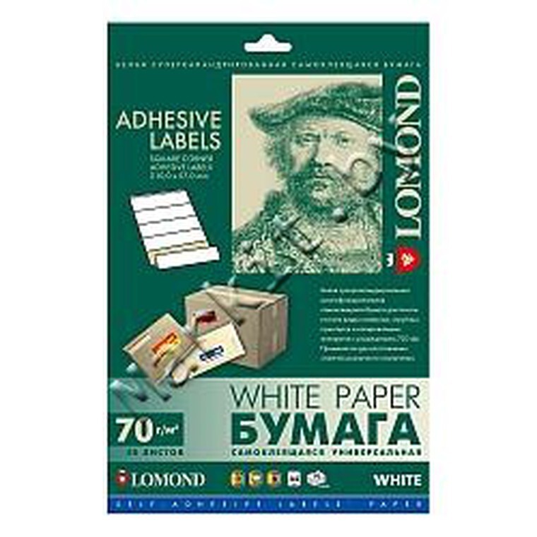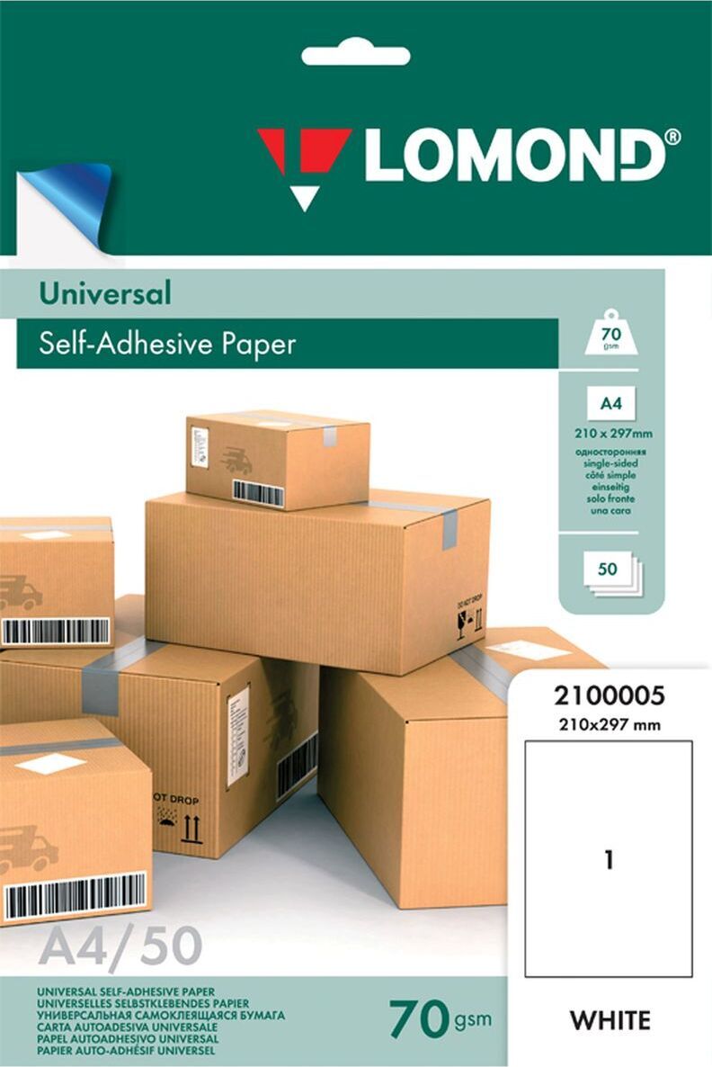 Бумага самоклеящаяся Lomond, формат А4, неделенная, белый, 70 г/м2, 50 листов