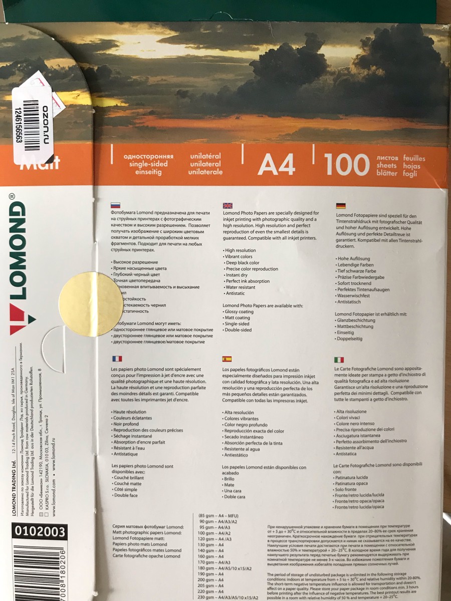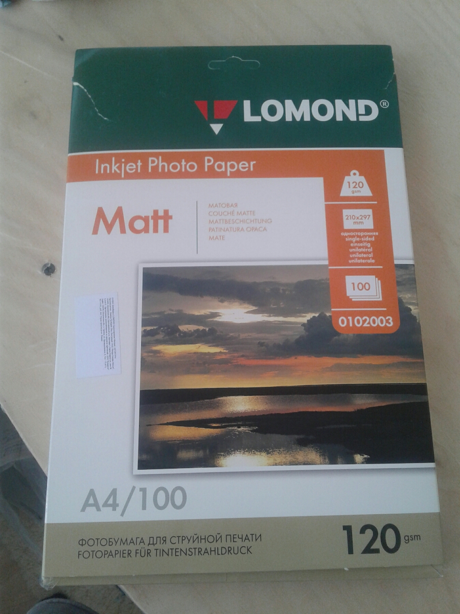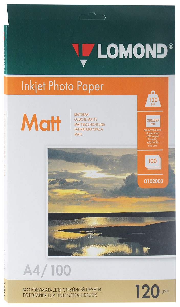 Фотобумага LOMOND Односторонняя Матовая A4/120/100л.