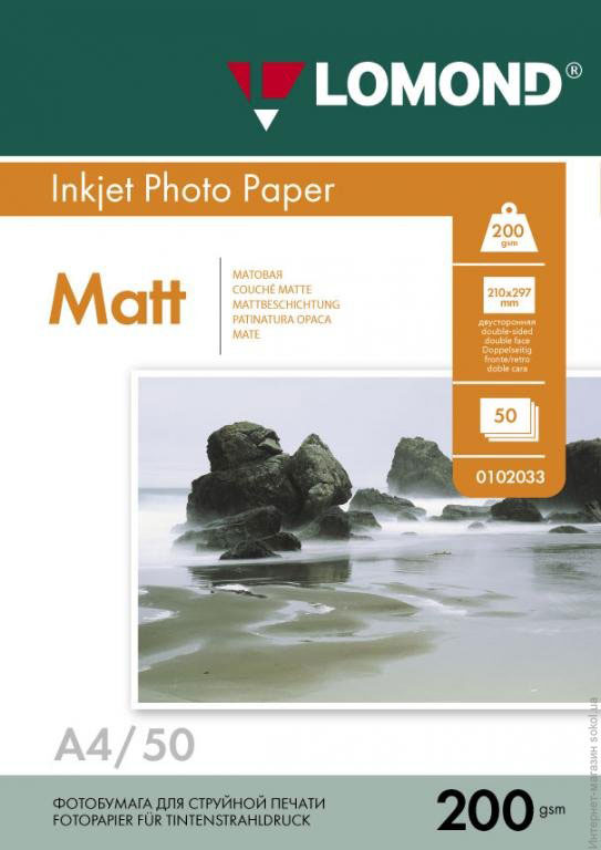 Фотобумага LOMOND Двусторонняя Матовая/Матовая A4/200/50л.