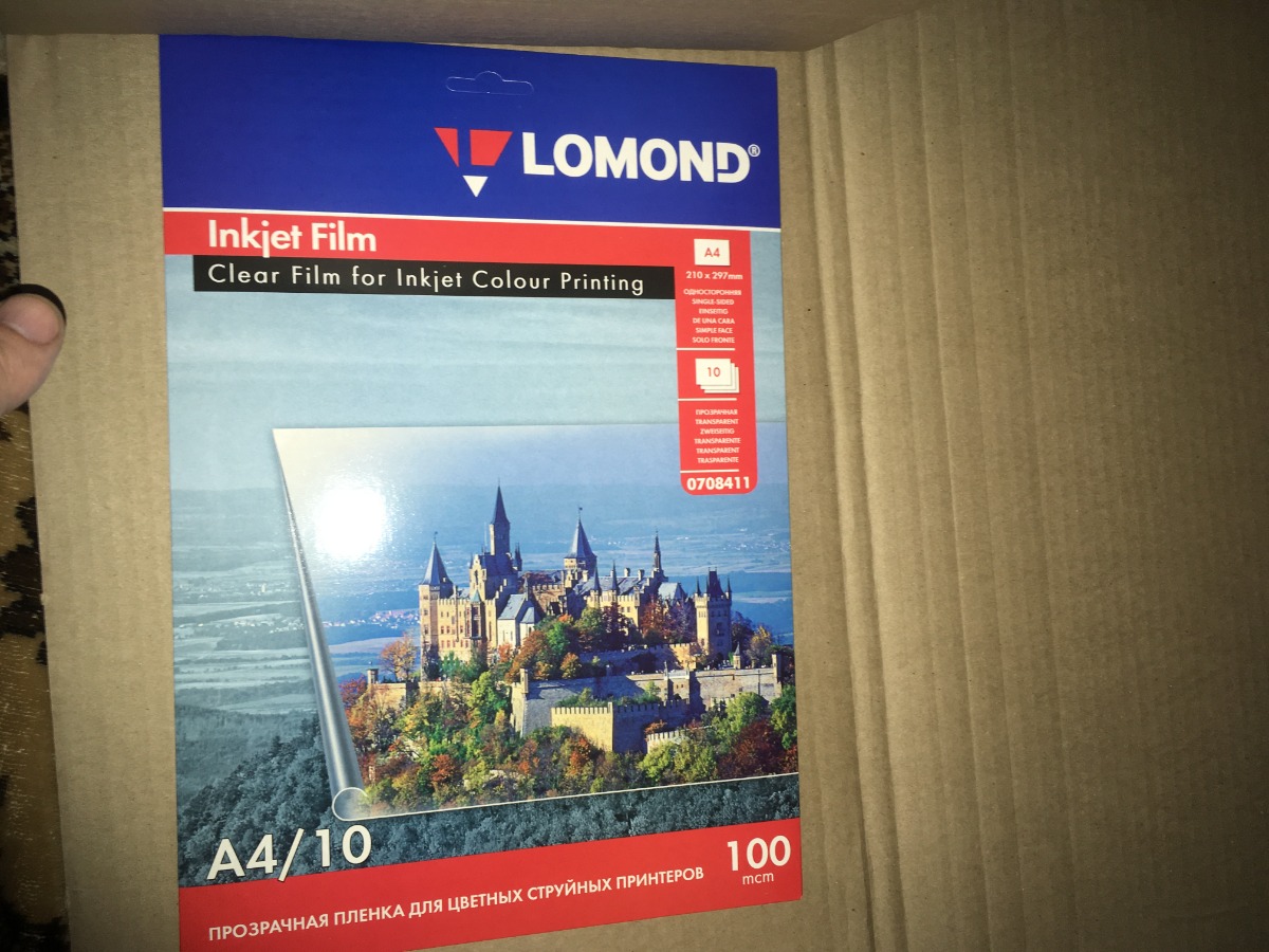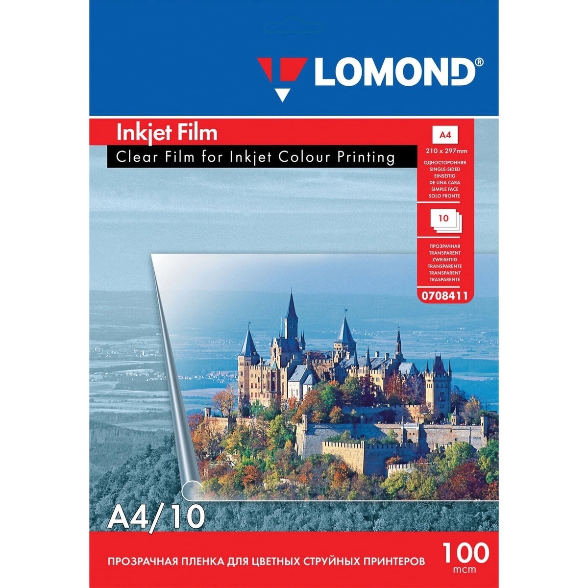 Пленка для струйной печати прозрачная, А4, 100 мкм, 10 листов, Lomond 0708411