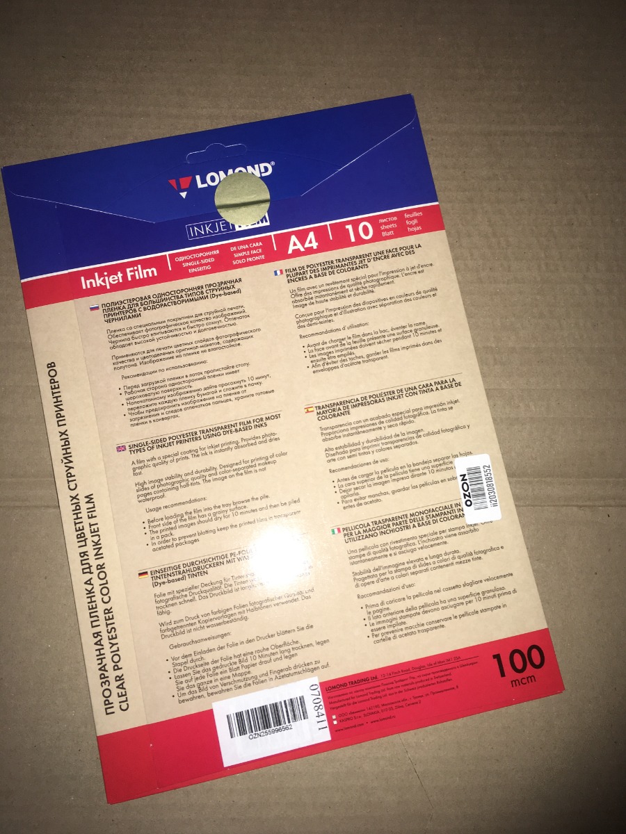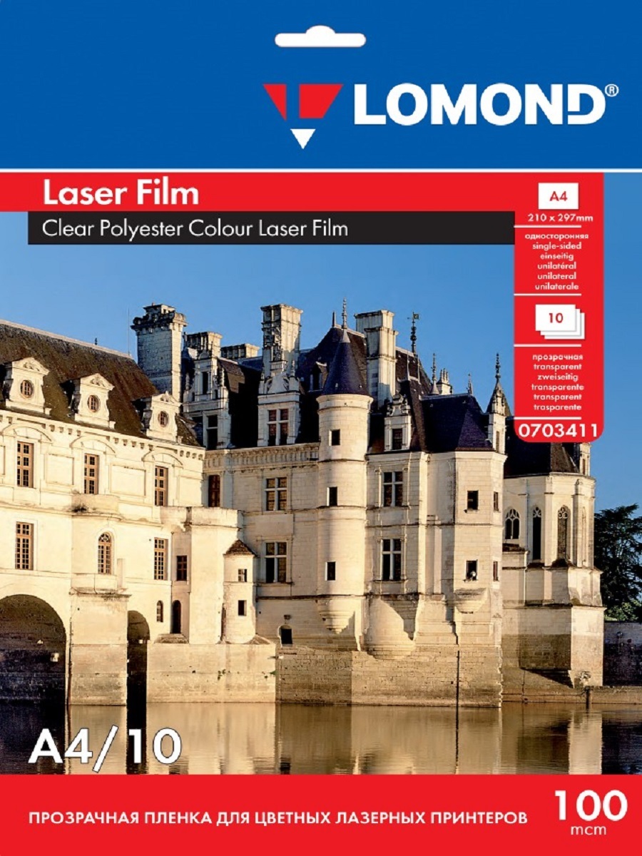Пленка для лазерной печати прозрачная, А4, 100 мкм, 10 листов, Lomond 0703411