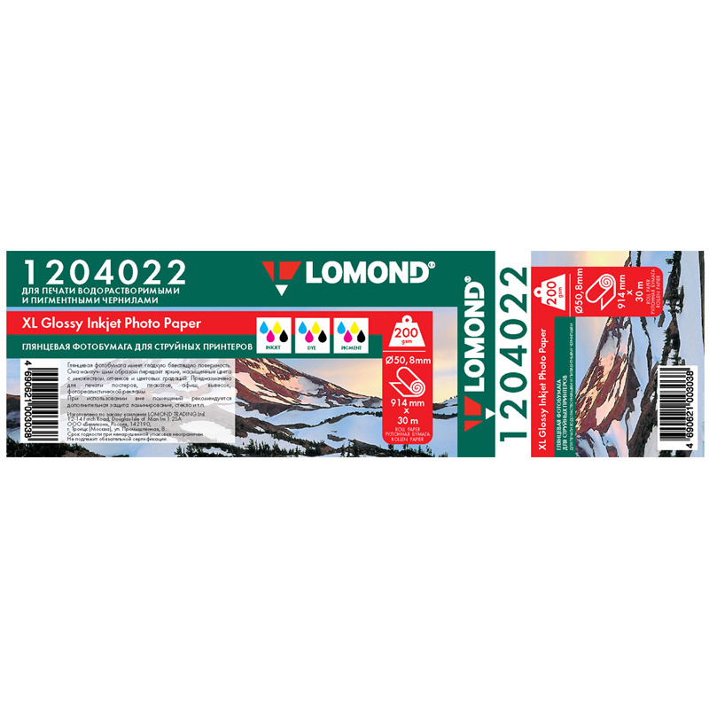 Бумага для плоттера глянцевая Lomond, 914ммх30м, 200г/м2, втулка 50,8 мм