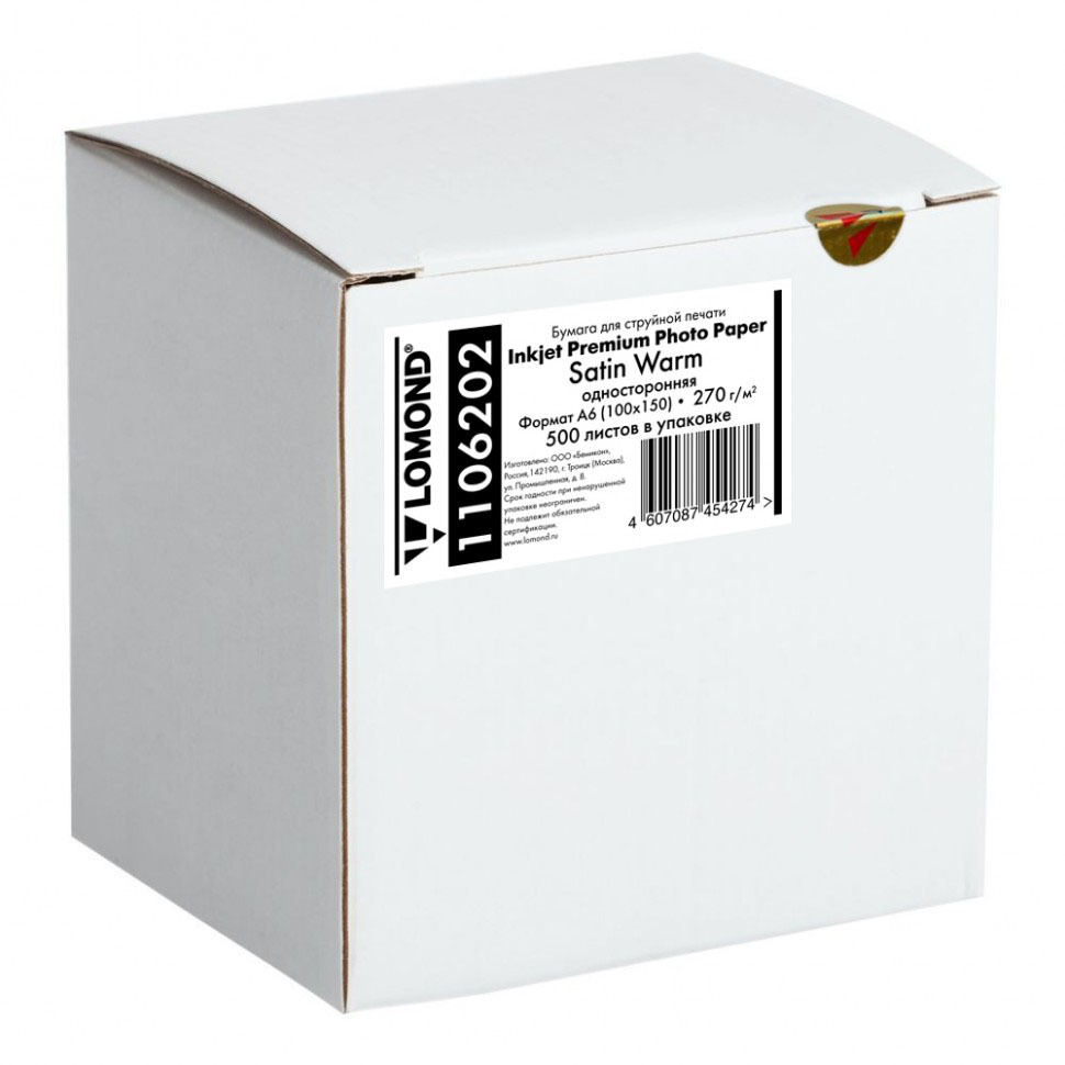 Фотобумага Lomond A6, 270 г/м2, односторонняя, атласная, тепло-белая, 500л (1106202)