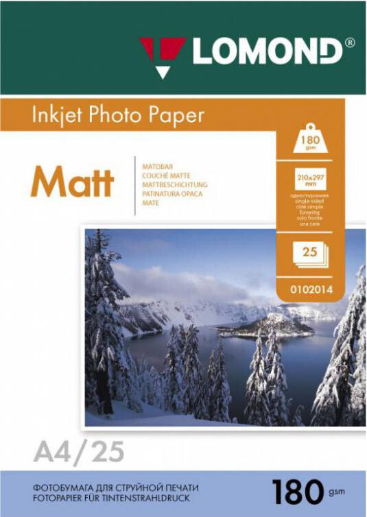 Фотобумага Lomond 0102037 A4, 180г, м2, 25л., белый матовое для струйной печати