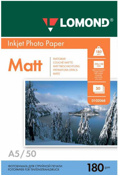 Фотобумага Lomond 0102068 A5, 180г, м2, 50л., белый матовое для струйной печати