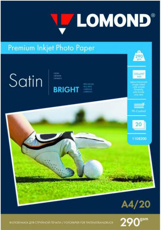 Бумага Lomond 1108200 A4, 290г, м2, 20л., белый сатин для струйной печати