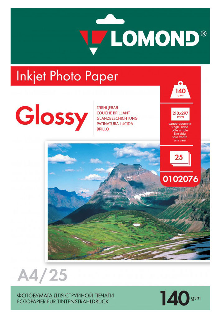 Фотобумага Lomond A4, 140 г/м2, одностороняя, глянцевая, 25л (0102076)