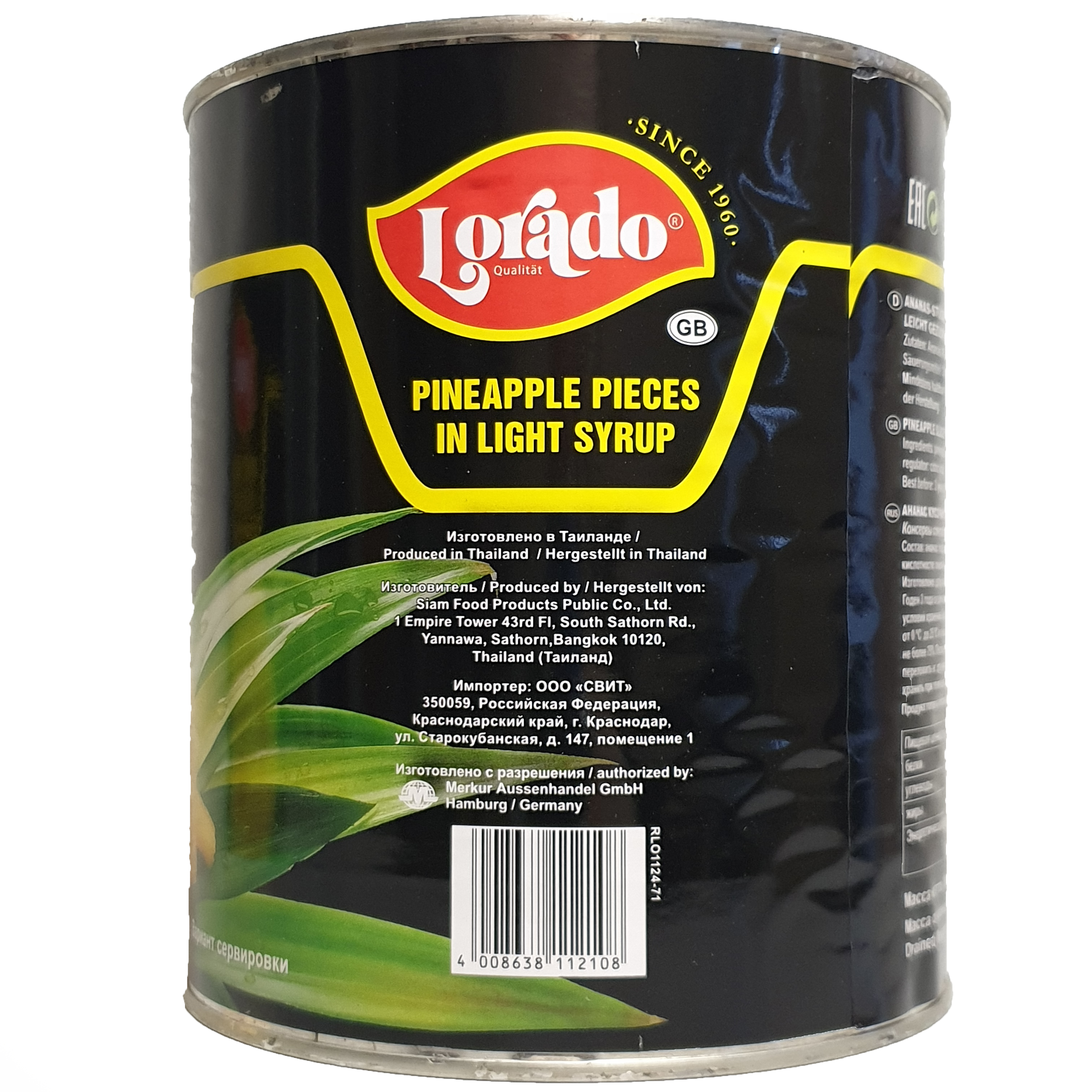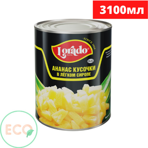 Ананасы в сиропе "LORADO" кусочками в БОЛЬШОЙ банке, Таиланд, 3100 мл